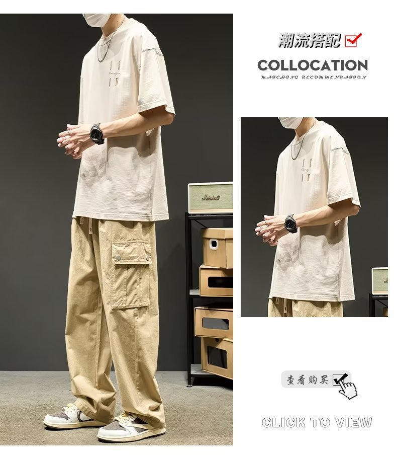 홍콩 스타일 다크 브라운 멀티 포켓 크레인 바지 남자 가을 복고풍 기능성 캐주얼 바지 스트레이트-다리 느슨한 와이드 레그 트렌디 트레일 링 바지스토어 가기