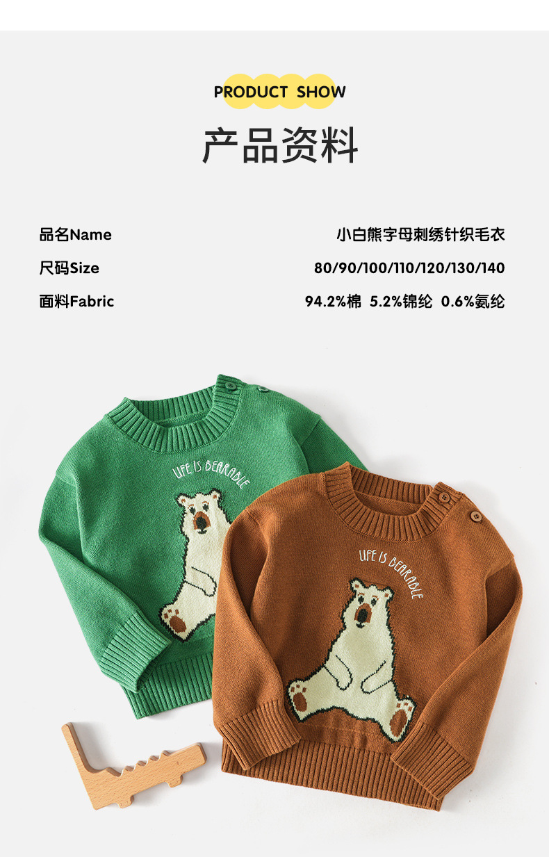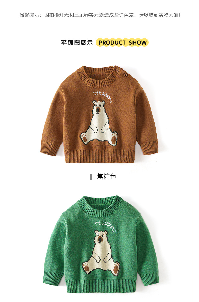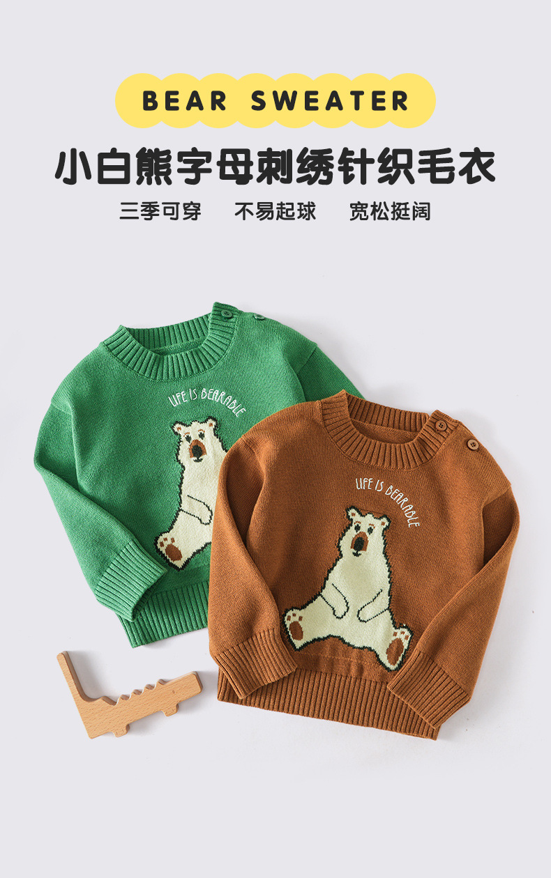 어린이 스웨터 풀오버 가을 한국 만화 곰 편지 자수 크루 넥 니트웨어 따뜻한 클래스 A 스웨터스토어 가기
