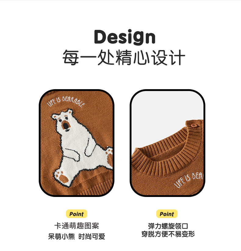 어린이 스웨터 풀오버 가을 한국 만화 곰 편지 자수 크루 넥 니트웨어 따뜻한 클래스 A 스웨터