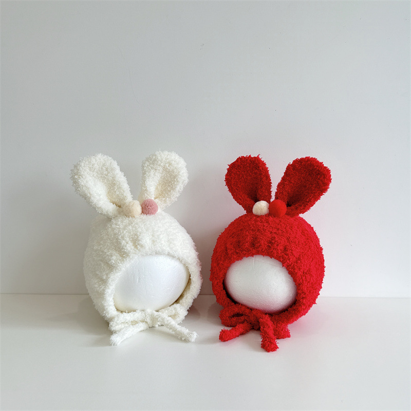 봉제 토끼 귀 귀여운 아기 모자 가을과 겨울 따뜻한 두꺼운 남자와 여자 유아 슈퍼 귀여운 귀 보호 모자