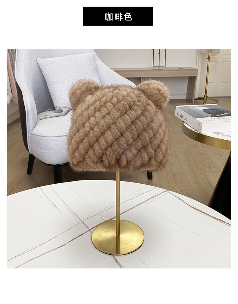 밍크 모피 모자 여성의 겨울 새로운 따뜻한 모피 밍크 모피 밍크 모피 니트 모자 귀여운 고양이 귀 곰 모자스토어 가기