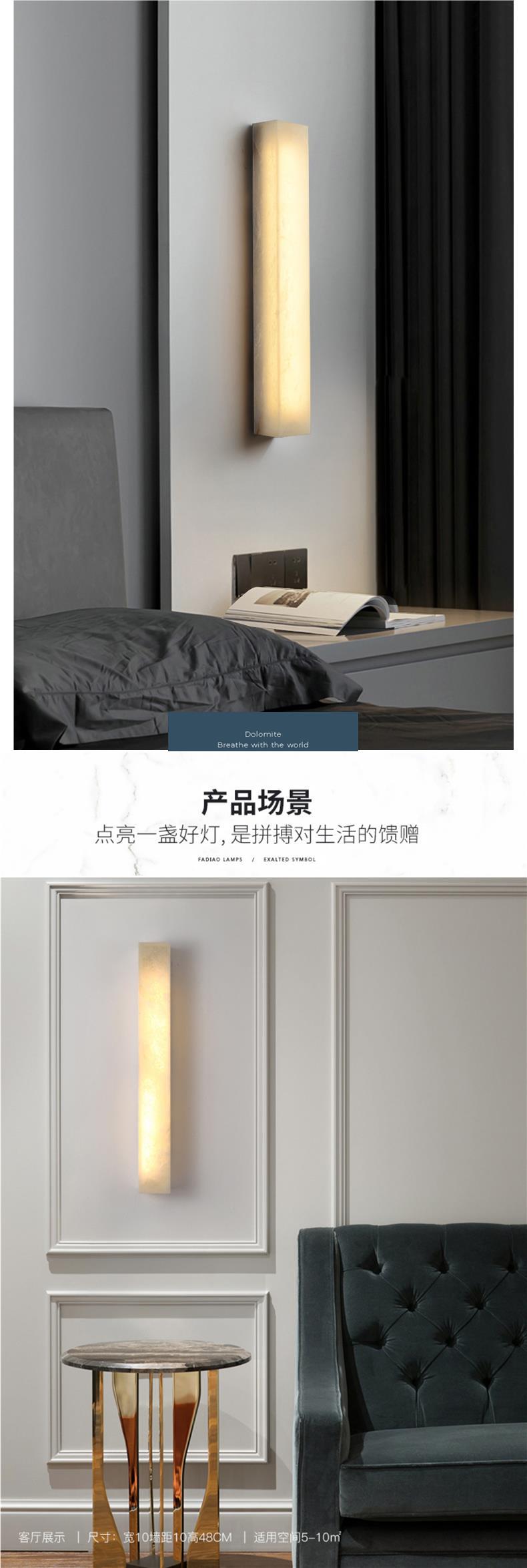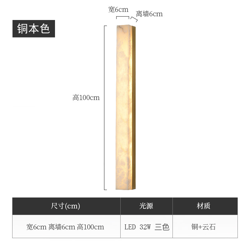 새로운 중국 스타일의 모든 구리 스페인 대리석 벽 램프 빌라 식당 침실 거실 배경 벽 장식 홈 내장 스트립