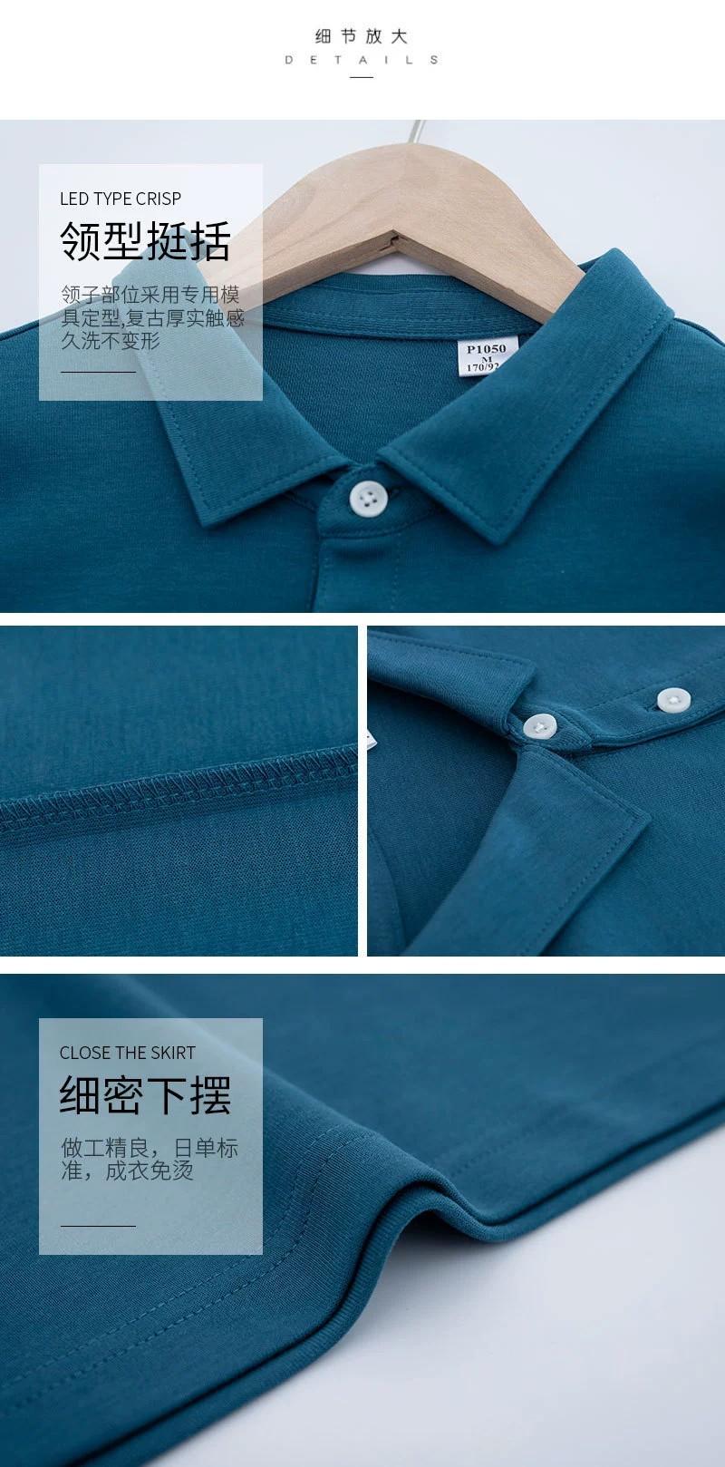 山羊绒衫翻领t恤莫代尔绸丽保暖衬衫领男装长袖秋冬加绒polo衫男
