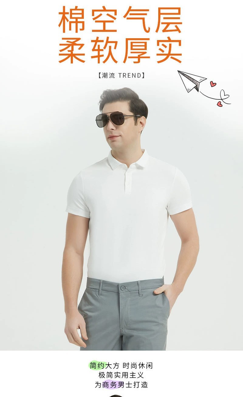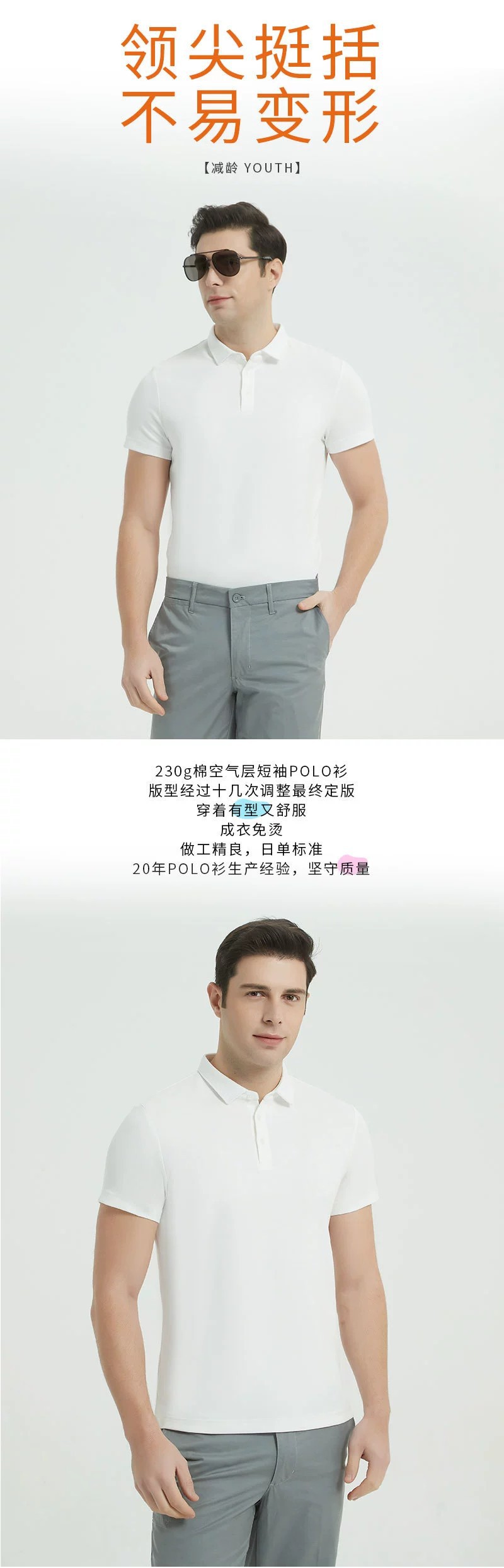 230g 양면 코튼 폴로 셔츠 남성용 티셔츠 반팔 에어 레이어 셔츠 옷깃 비즈니스 폴로 셔츠 남성용 하이 엔드