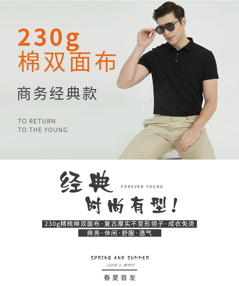 230g双面棉polo衫男t恤短袖空气层衬衫翻领商务polo衫男士高级感