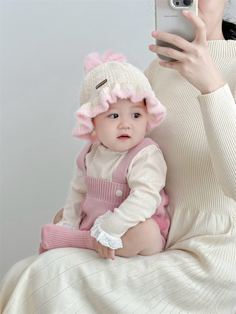 아기 모자 가을과 겨울 니트 모자 아기 소녀 귀여운 귀여운 귀 보호 모자 아기 겨울 공주 울 모자스토어 가기