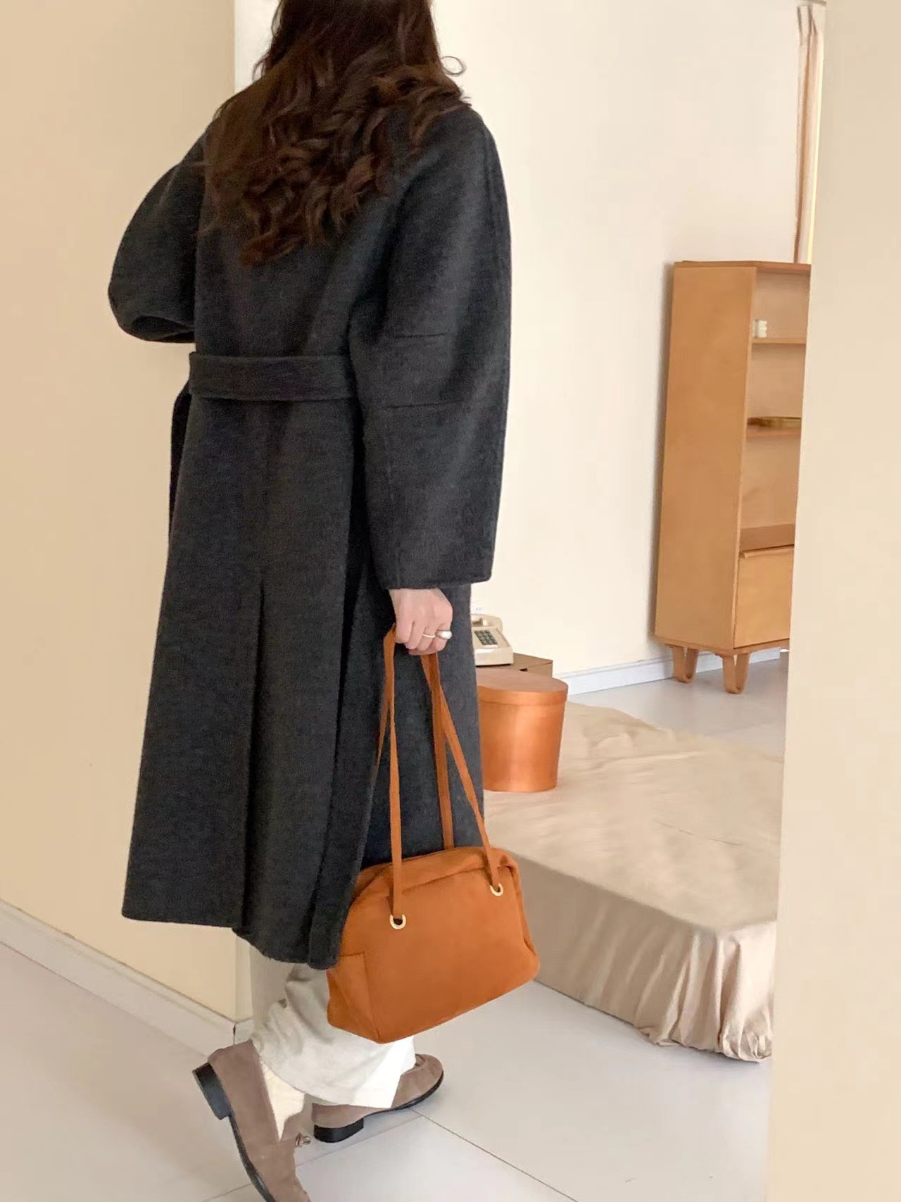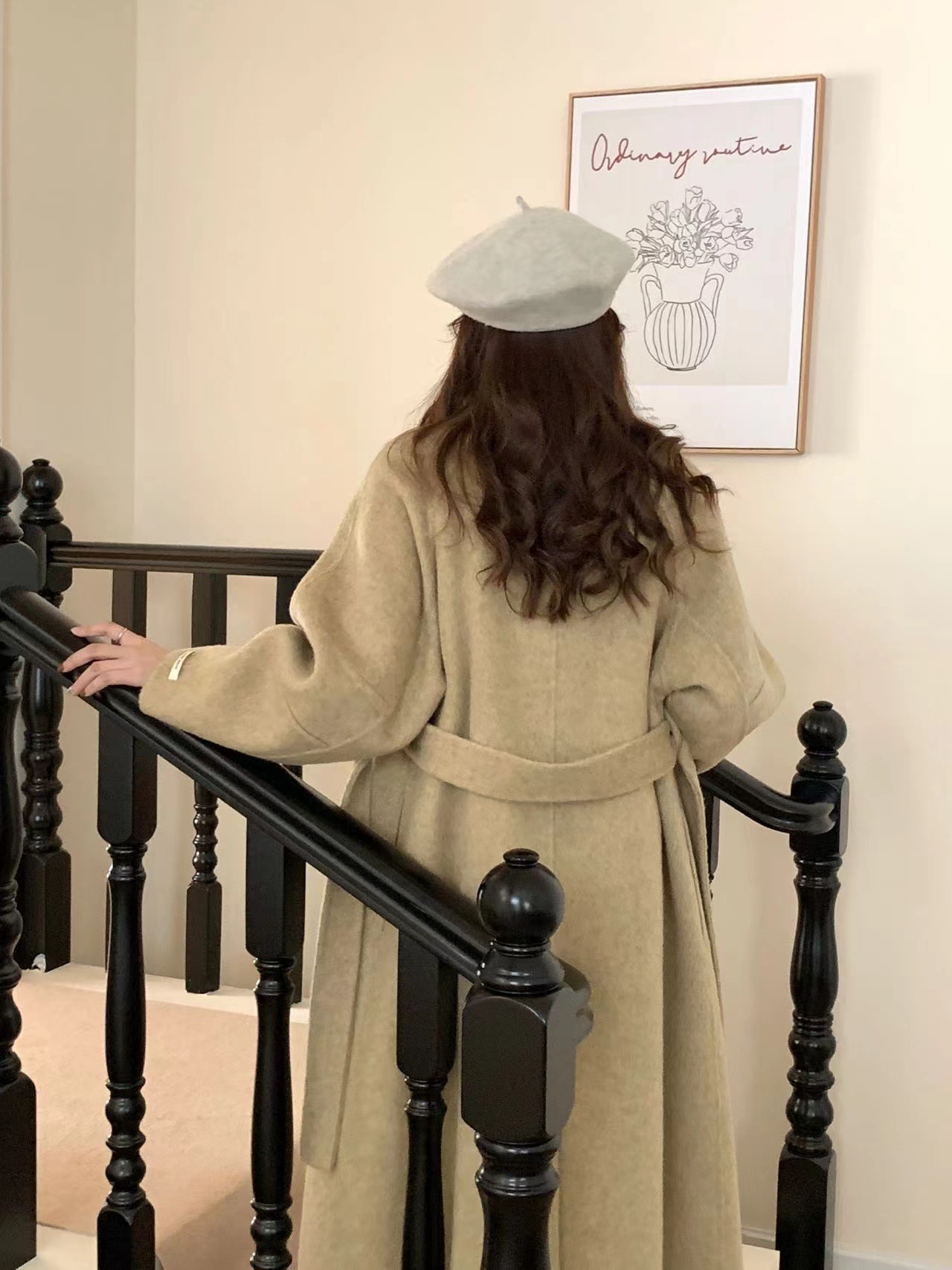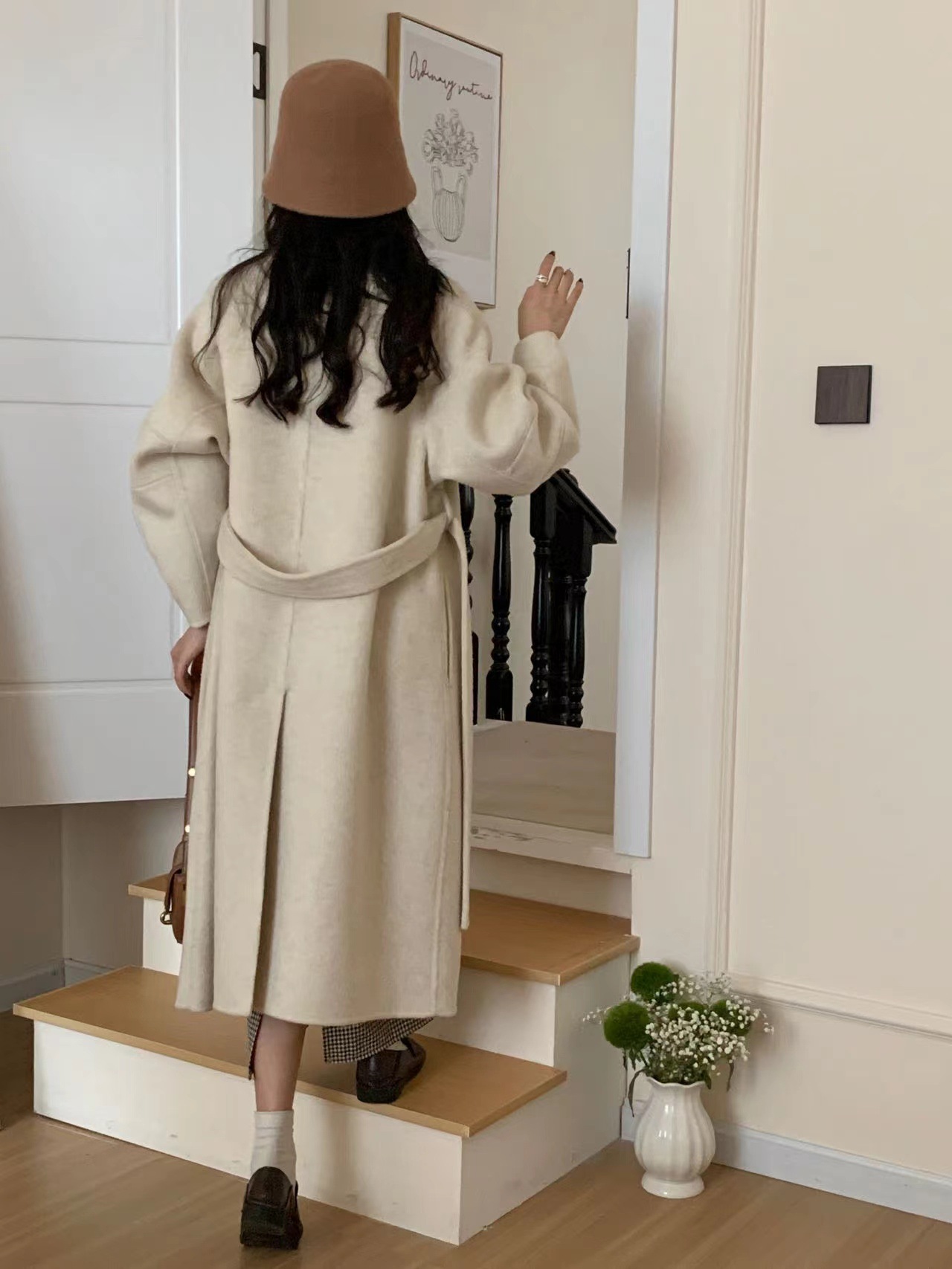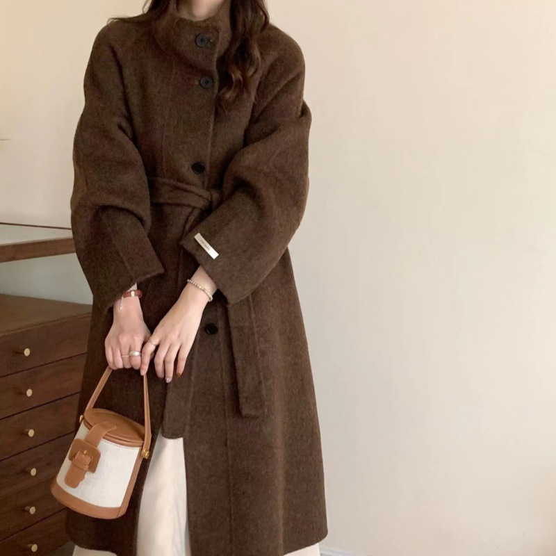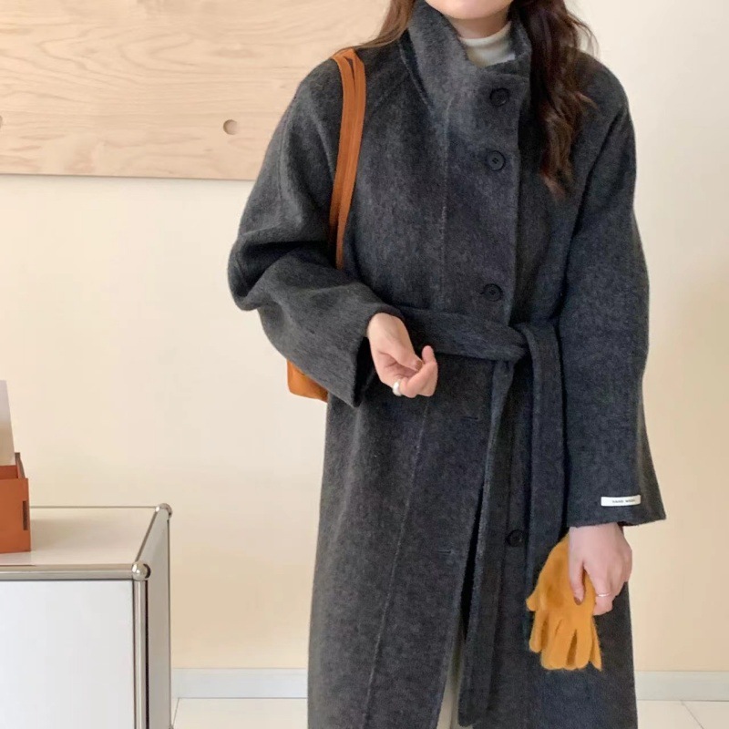 한국 스타일의 카라, 싱글 브레스트, 레이스업, 양면 울 코트, 루즈한 한국 스타일 모직 코트, 가을 겨울 신상 스타일스토어 가기