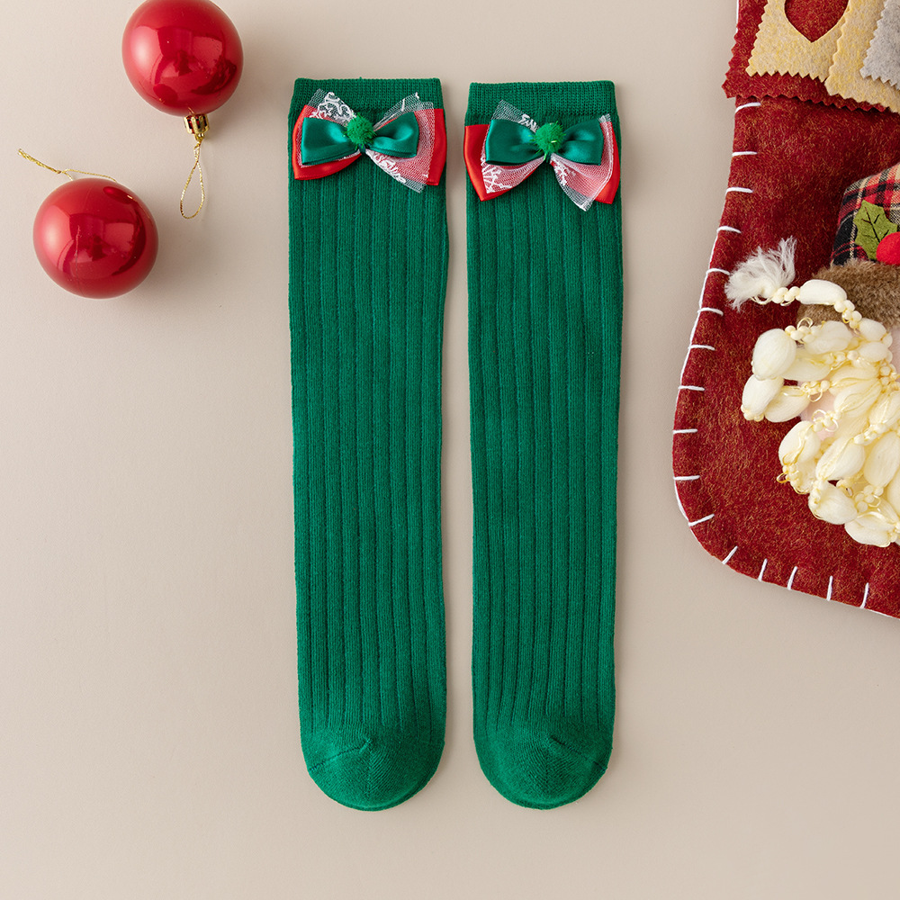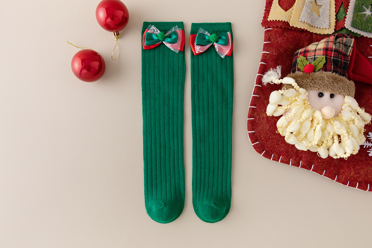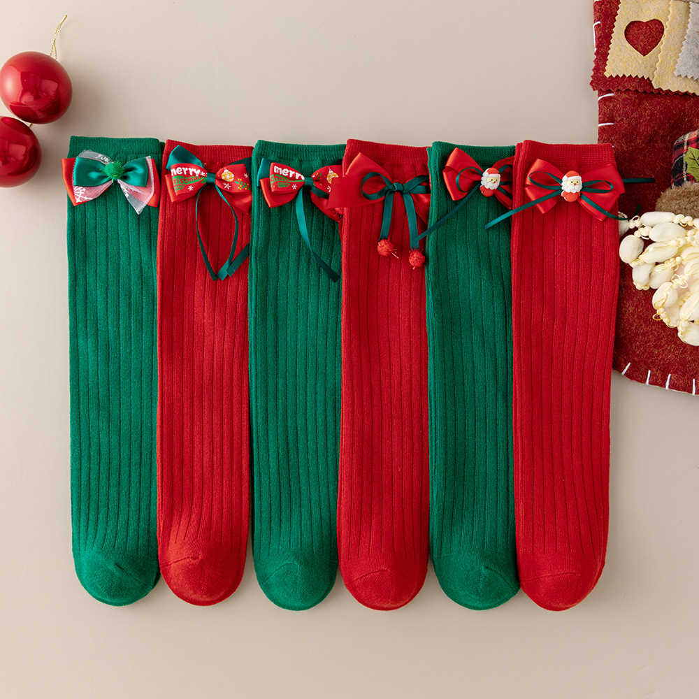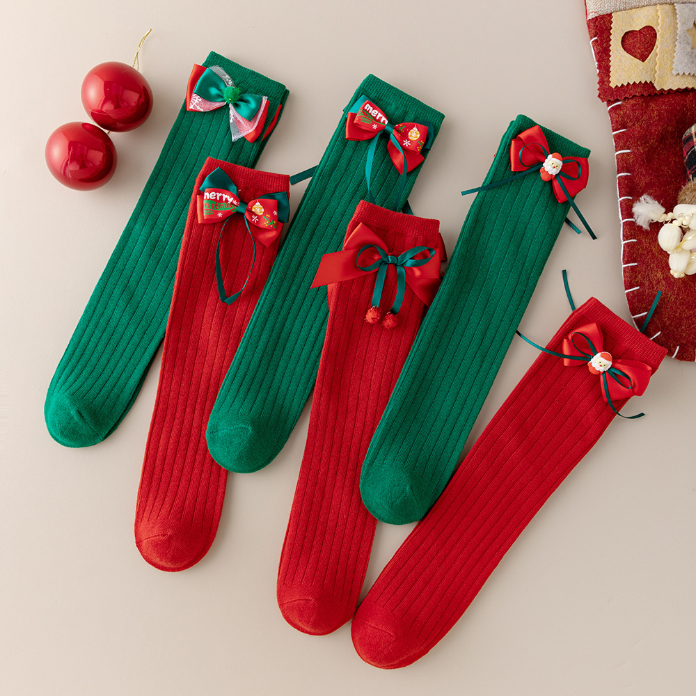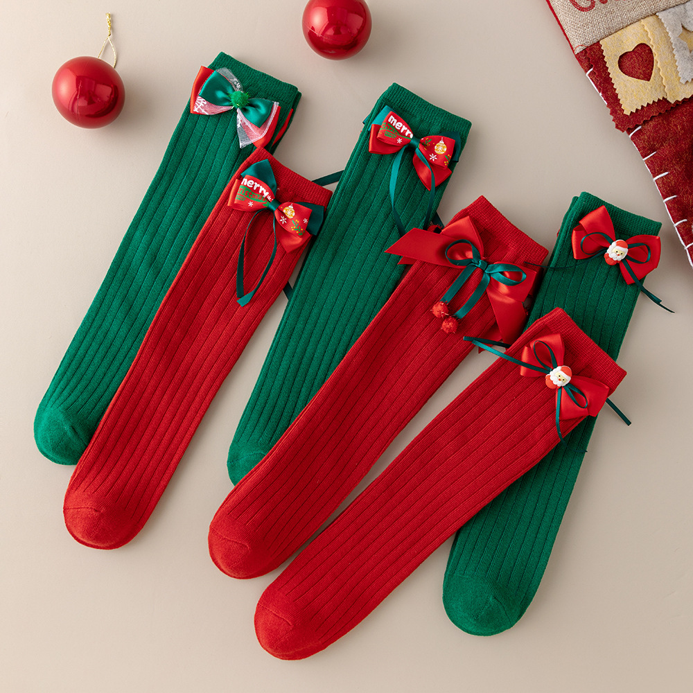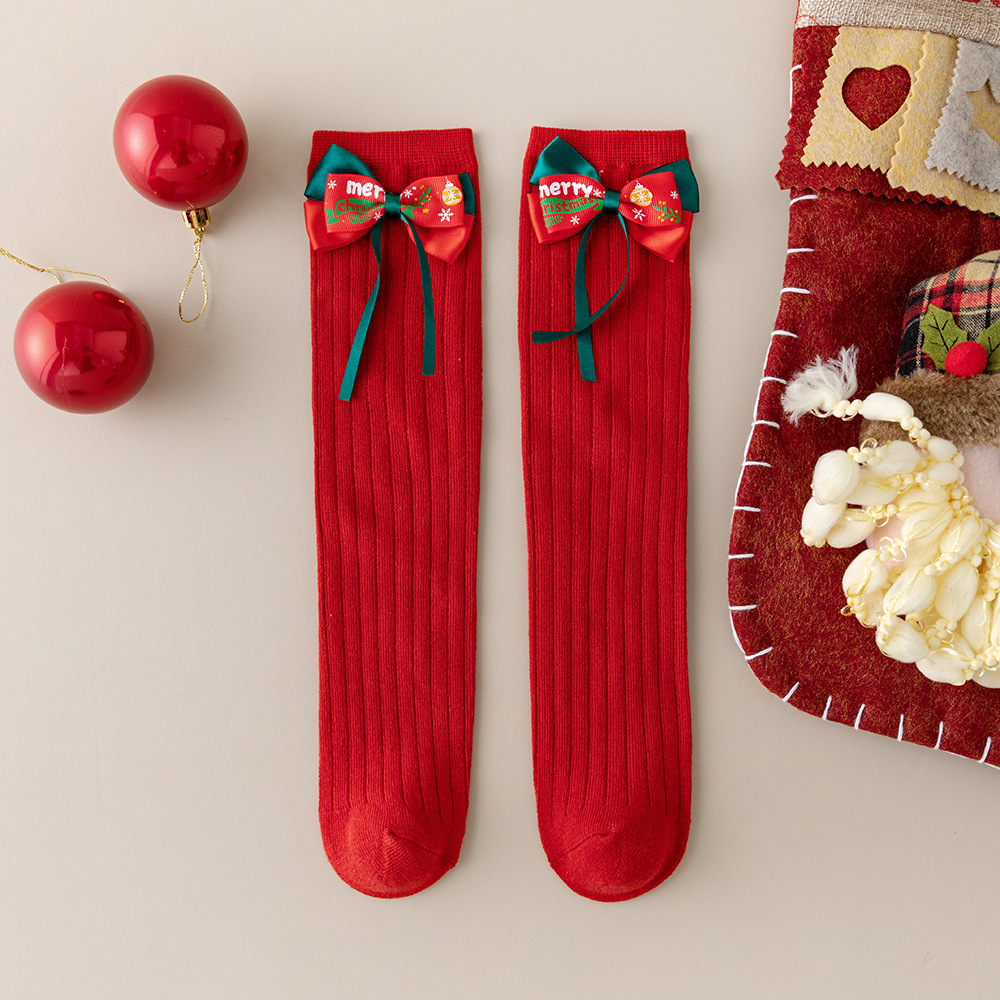 어린이 양말 가을과 겨울 활 빨간 종아리 양말 소녀 붉은 면 양말 크리스마스 양말스토어 가기