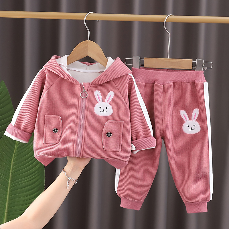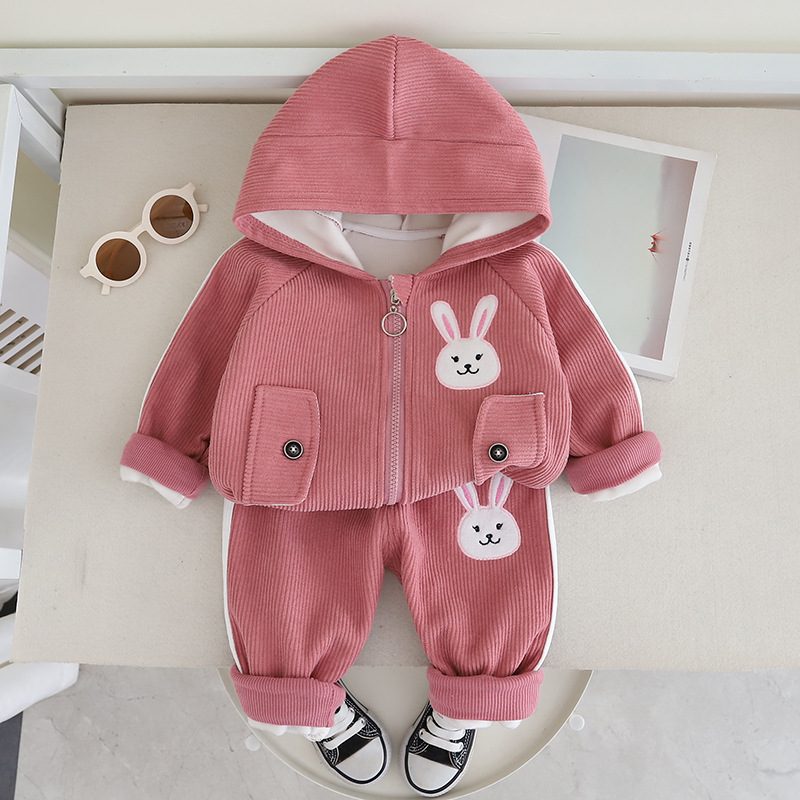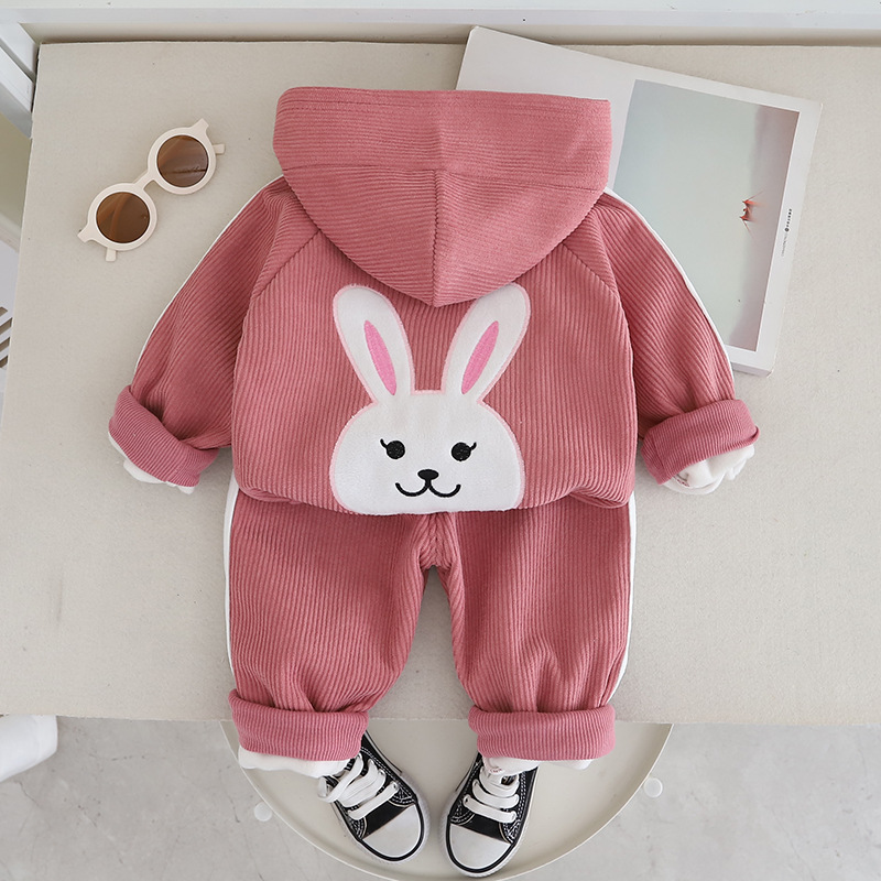가을과 겨울 긴팔 세트 소년 겨울 새로운 어린이 인터넷 인기 가슴 토끼 머리 기모 긴팔 투피스 유행 세트