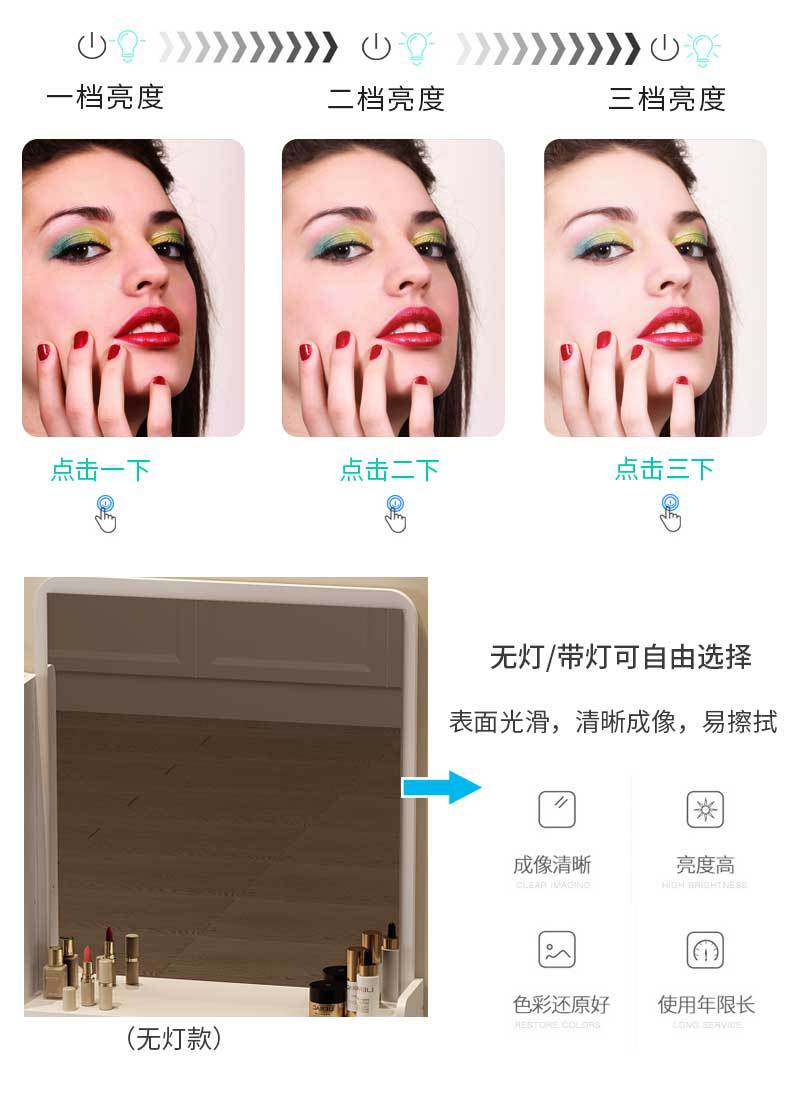 • 따뜻한 흰색 이중 서랍 사각 거울 모델(LED 조명) &