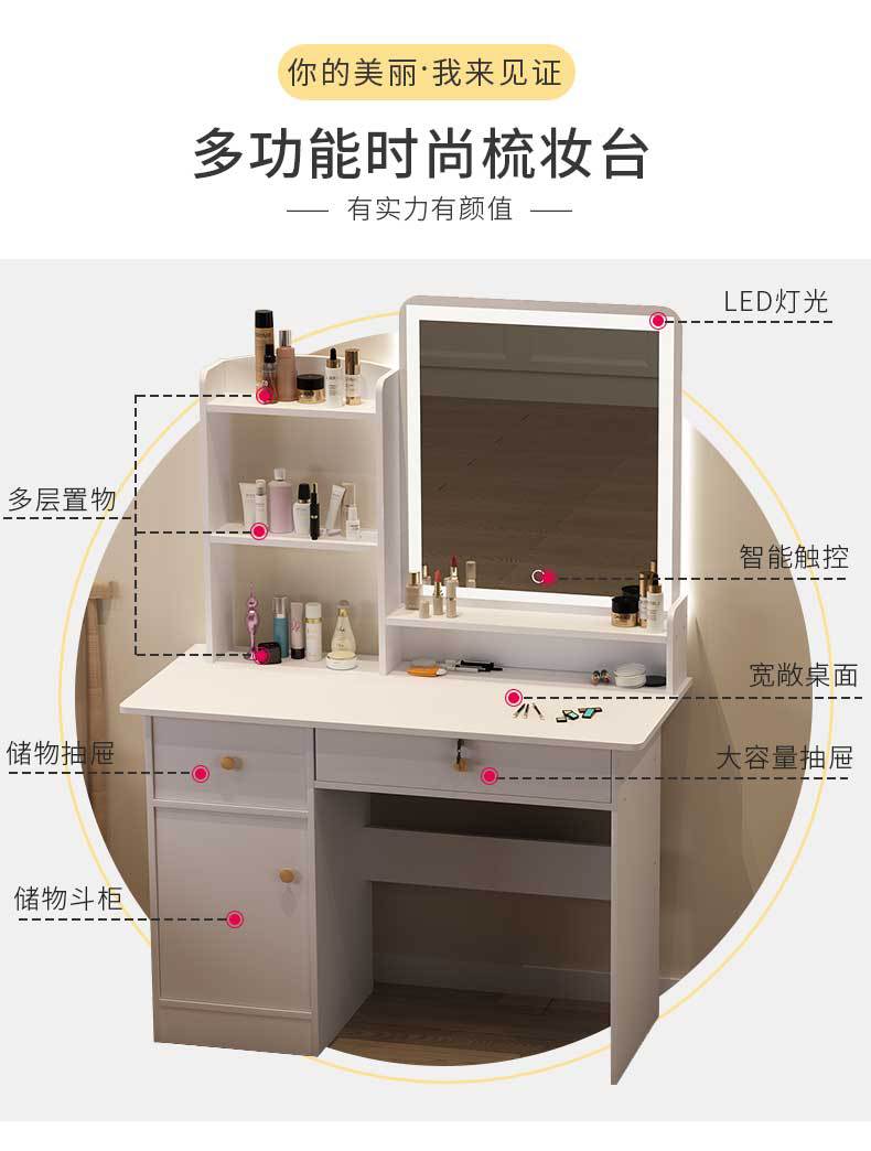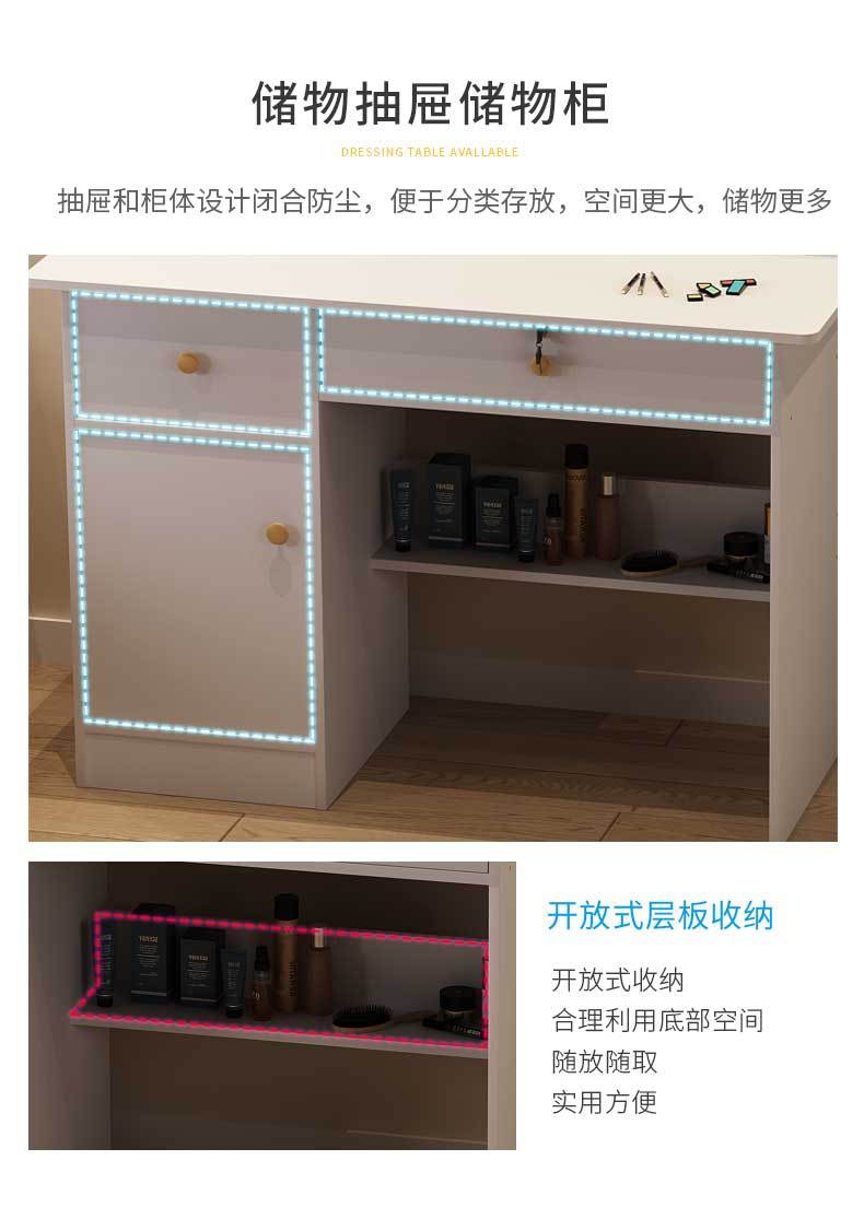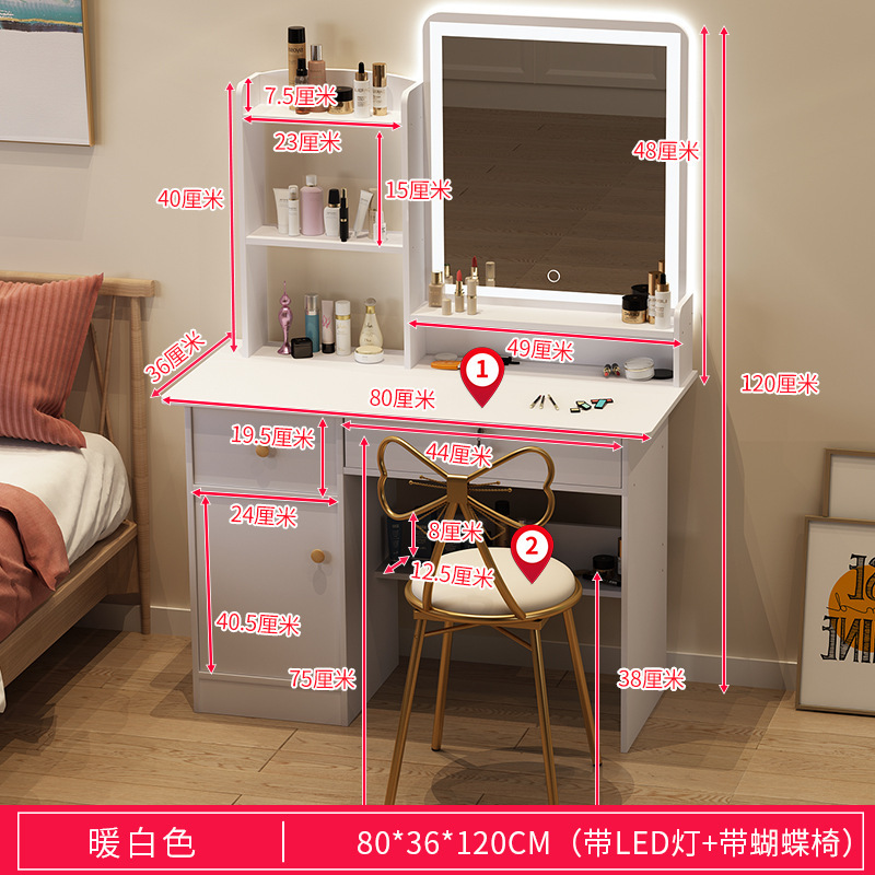 • [서랍 4개, 수납장 2개 + LED 조명 + 화장대] 80cm 웜화이트 &