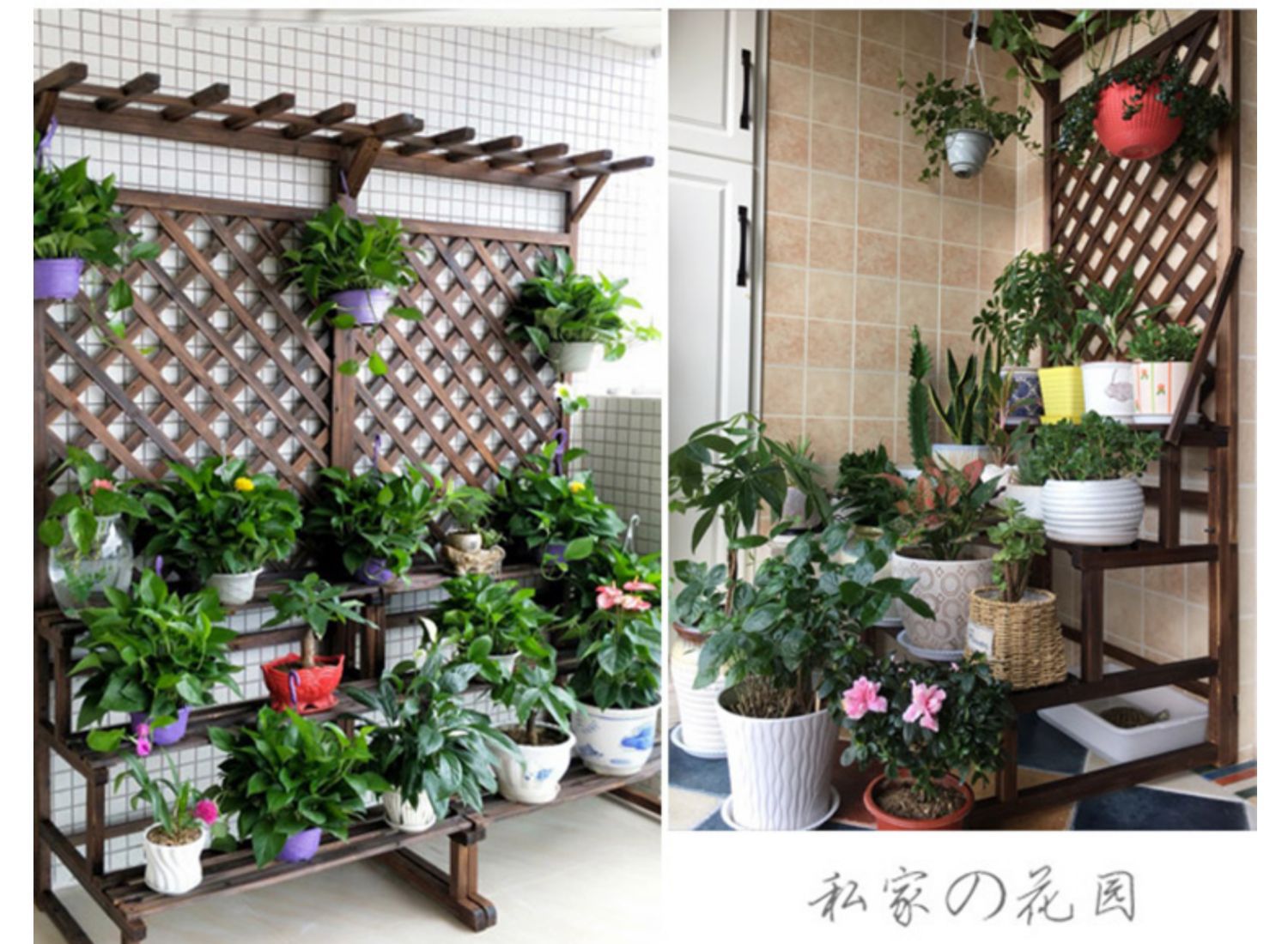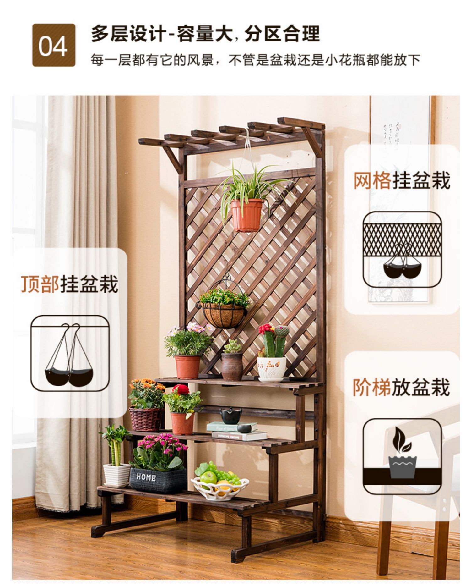 Anticorrosive Wood Balcony 실내 바닥 서 다층 꽃 랙 스테핑 꽃 랙 거실 솔리드 우드 그리드 저장 꽃 냄비 랙