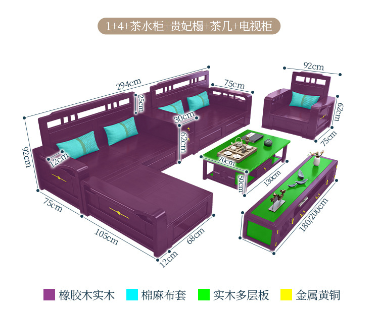 • 3인승 + 황실 첩 소파 + 중형 캐비닛 + 커피 테이블 &