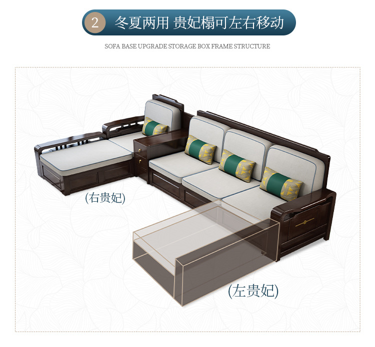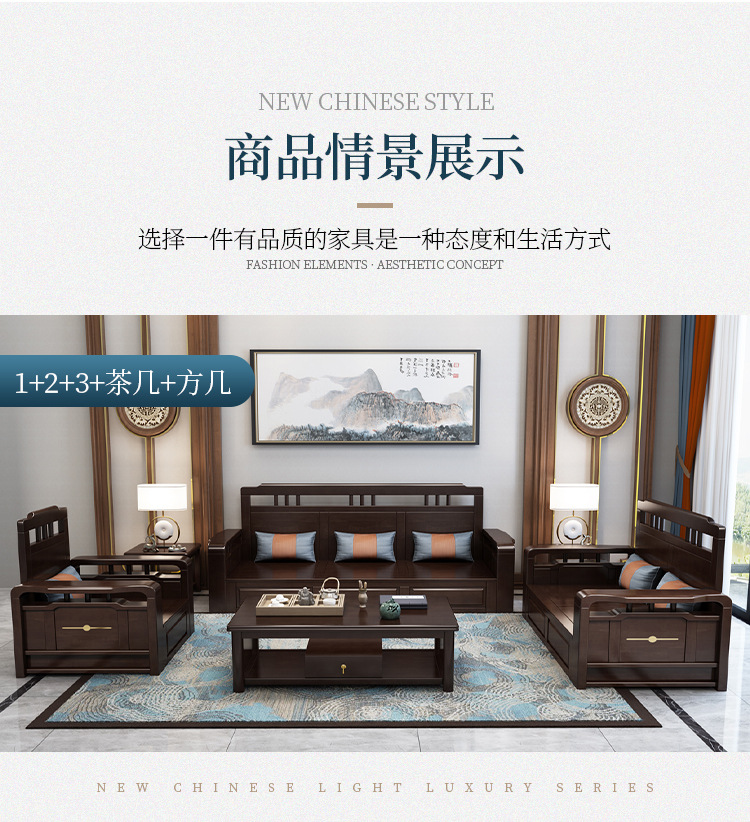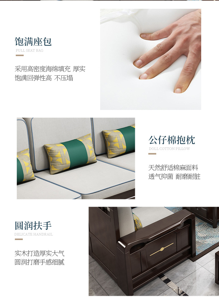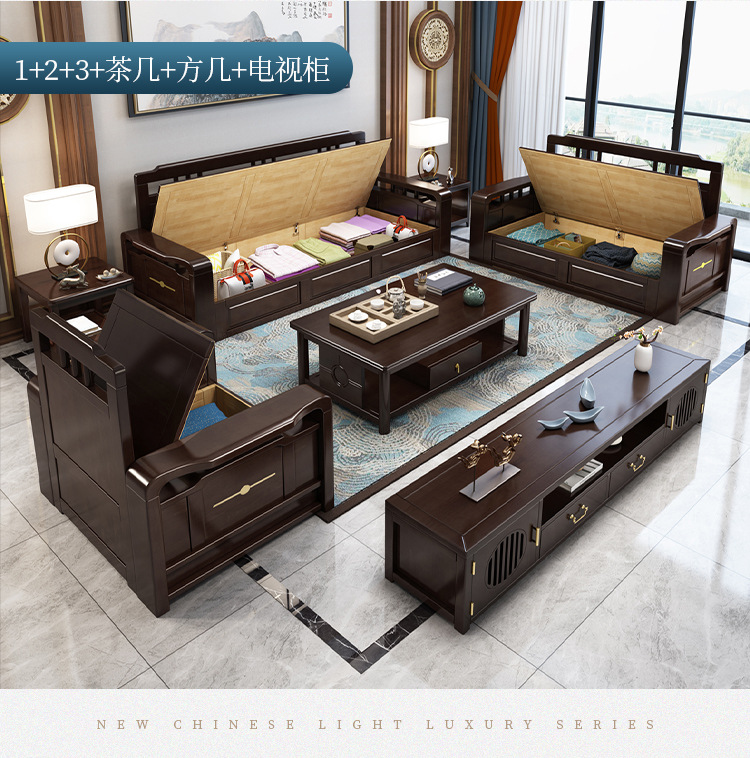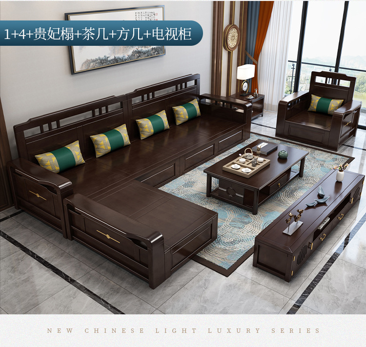 겨울과 여름 현대 거실 오크 라이트 럭셔리 작은 아파트 저장 나무 임페리얼 첩을위한 새로운 중국 스타일 솔리드 우드 소파 조합스토어 가기