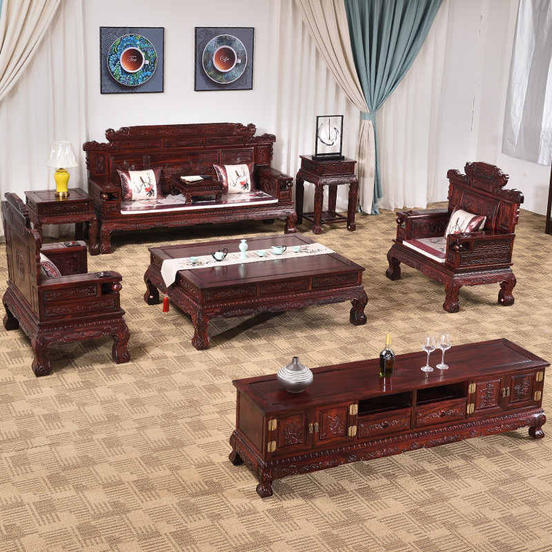 레드 우드 소파 중국 스타일 거실 조각 아프리카 머니 소파 클래식 올인원 조합 인도네시아 블랙 산성 지점 목재 가구스토어 가기