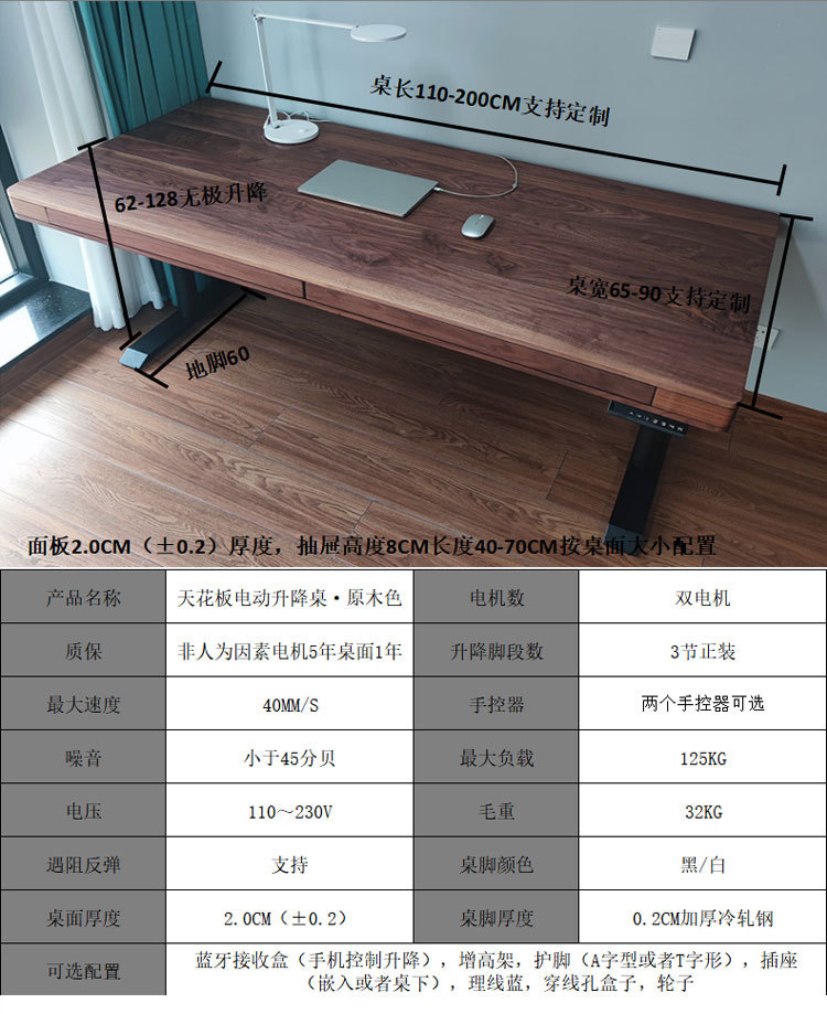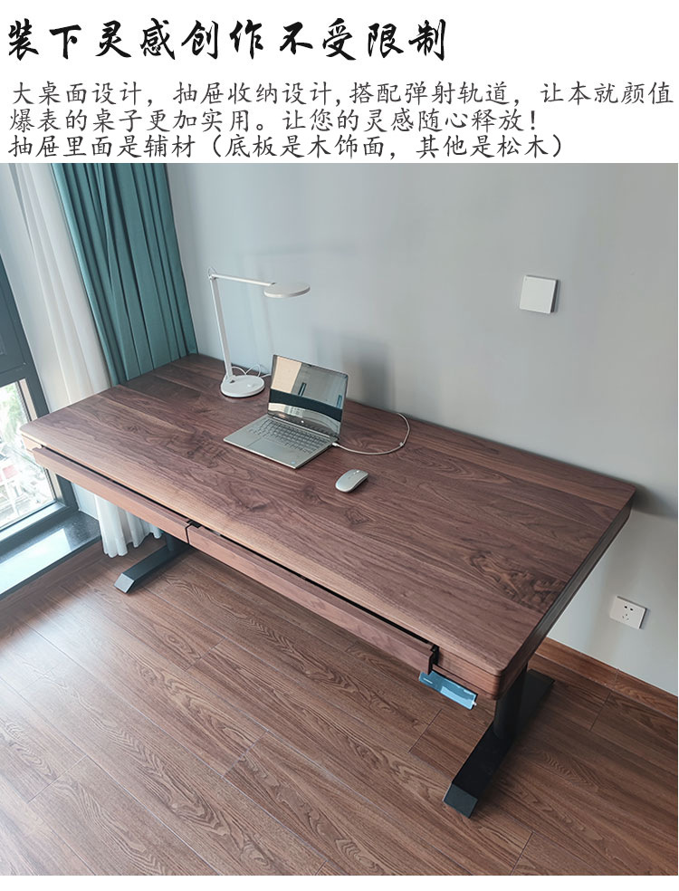 블랙 호두 컴퓨터 책상 전기 리프팅 테이블 커피 테이블 식탁 거실 이중 사용 지능형 솔리드 우드 중학생 연구 테이블스토어 가기