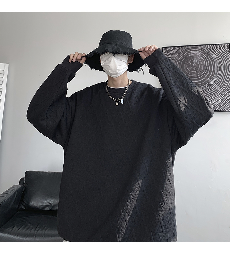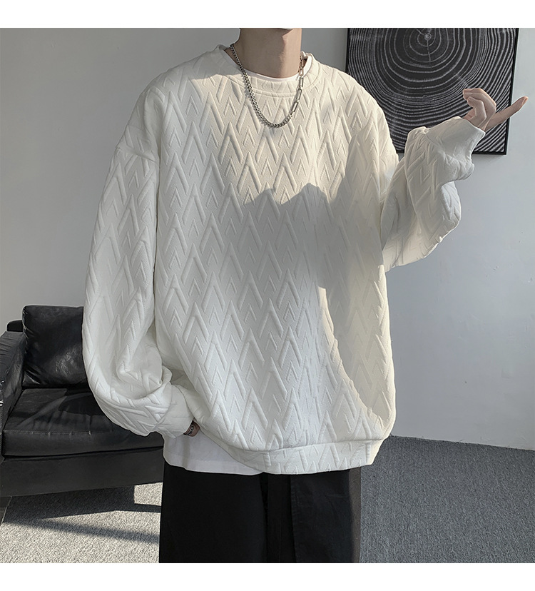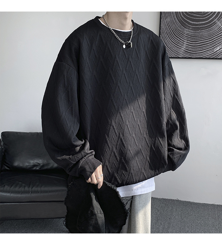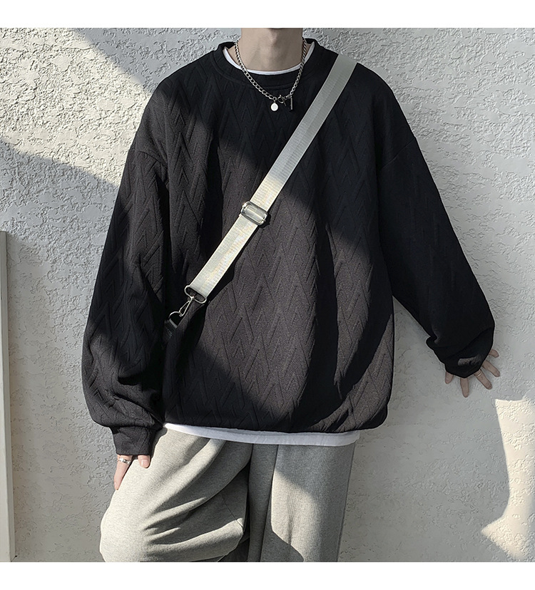 크루 넥 자카드 스웨트 셔츠 남성용 봄과 가을 어퍼 의류 기본 긴 소매 플러스 사이즈 남성용 코트 트렌디 브랜드 헤비