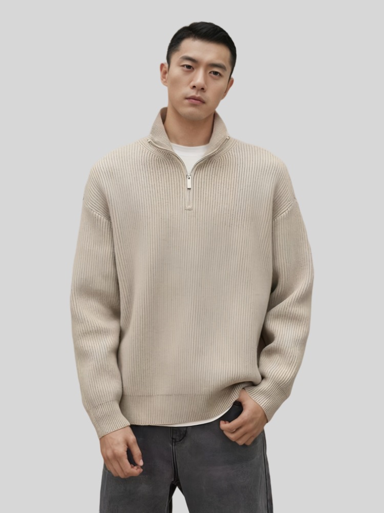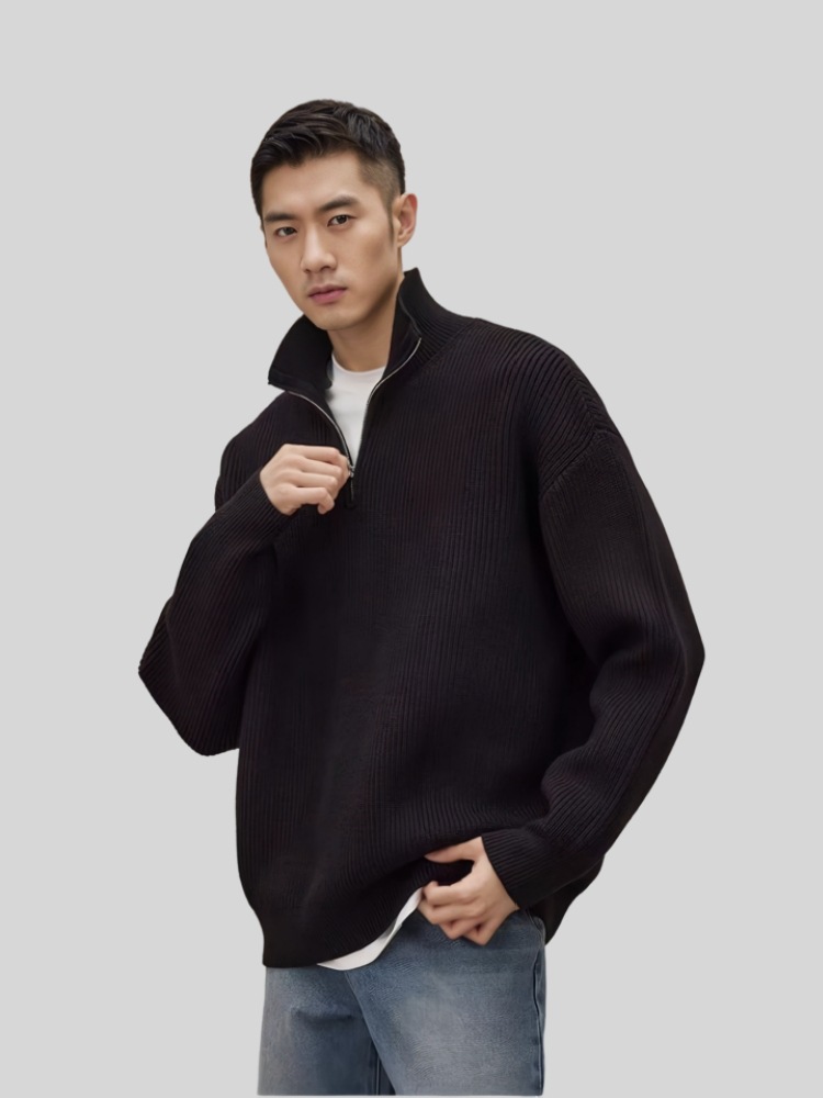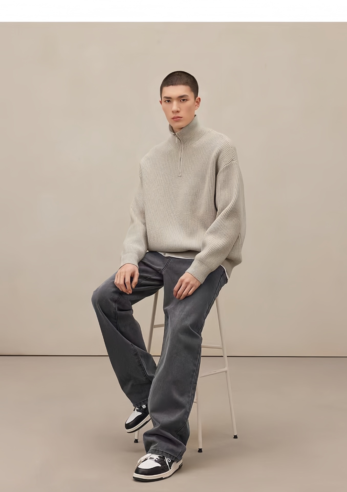 무거운 600g 하프 지프 폴로 수직 칼라 두꺼운 스웨터 남자 겨울 미국 레트로 하이 엔드 남자 니트웨어스토어 가기