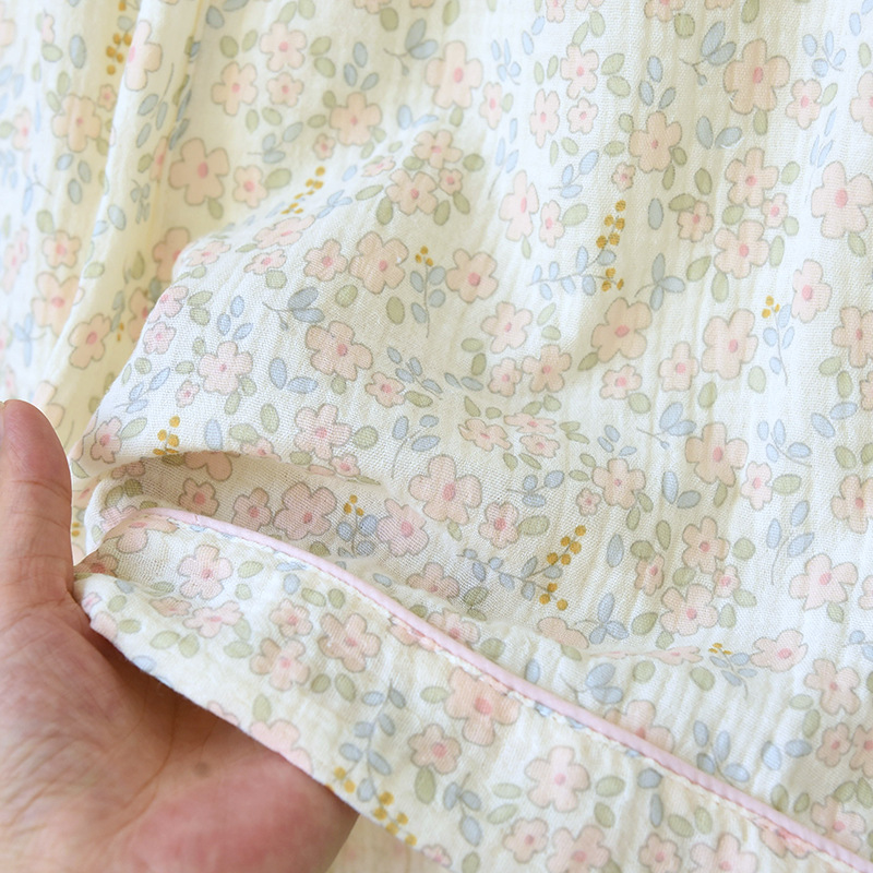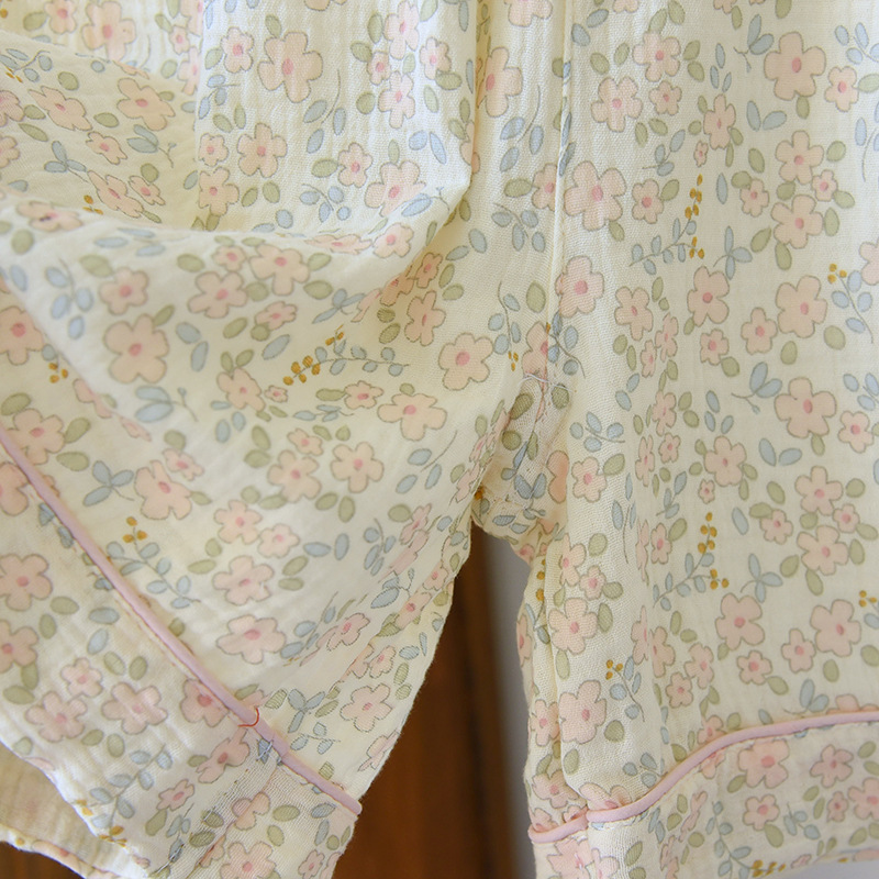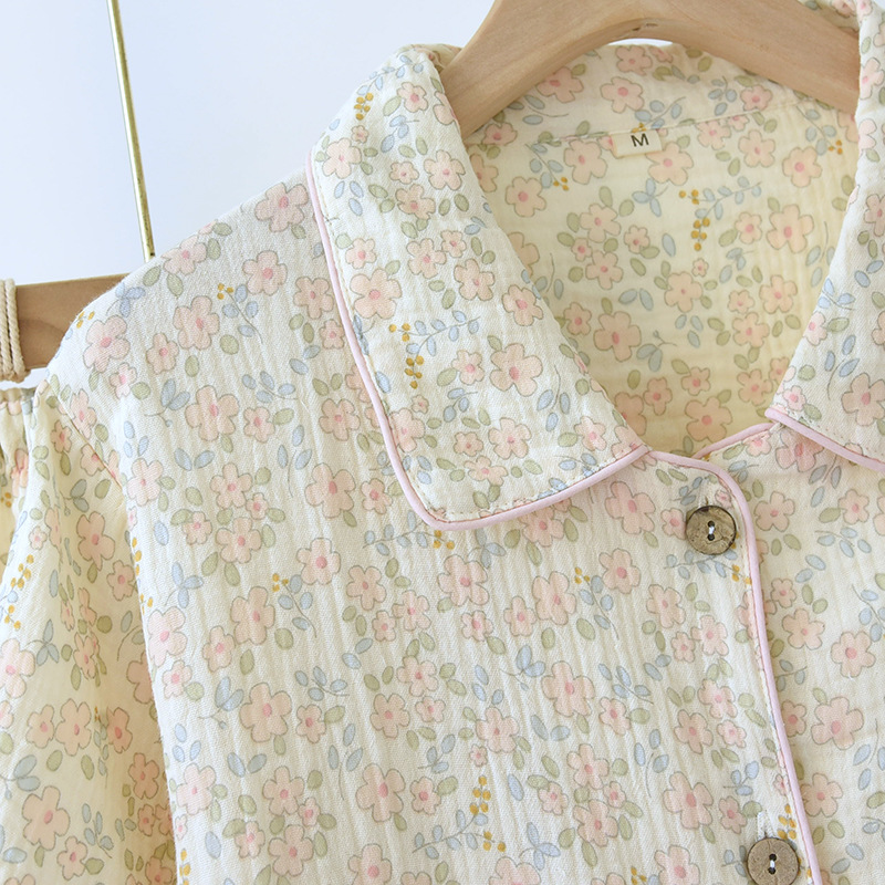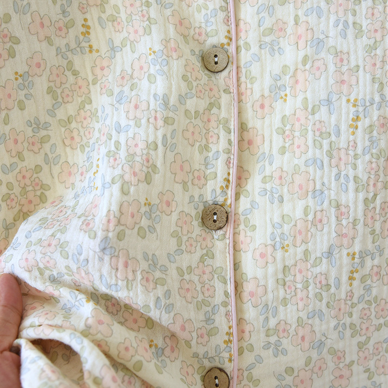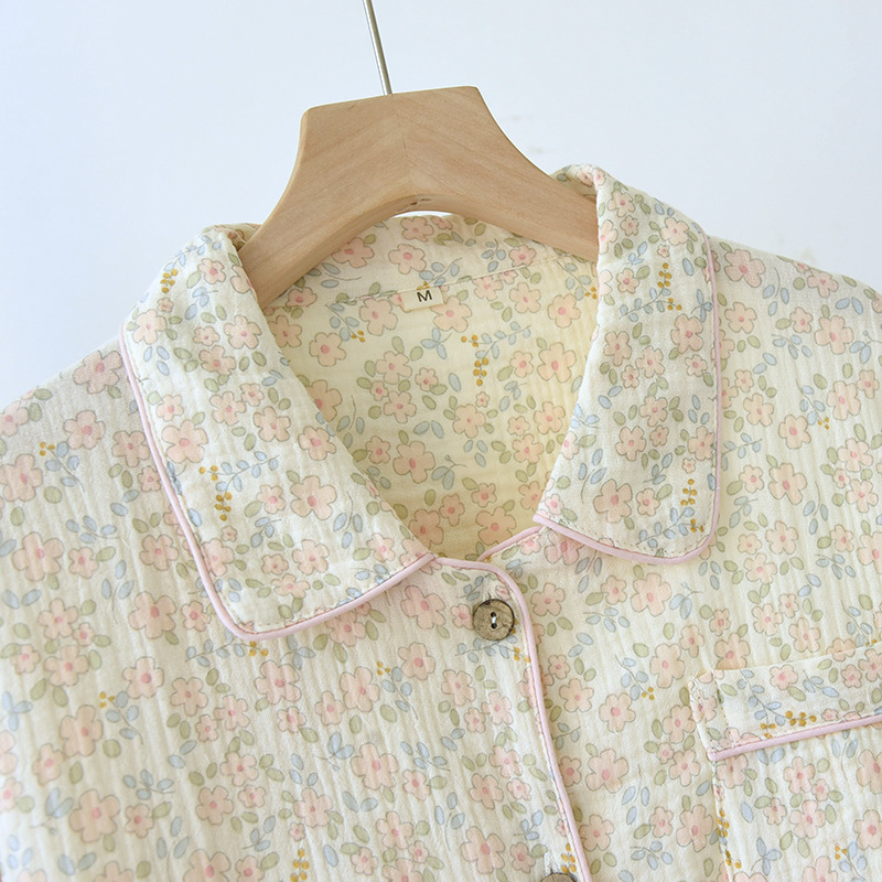 여름 코튼 거즈 반팔 홈 의류 세트 여성용 얇은 달콤한 프린트 크레이프 파자마스토어 가기