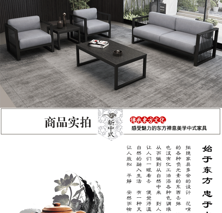 새로운 중국 스타일 패브릭 선 간단한 스타일 티 룸 골동품 이동식 및 세척 가능한 현대 사무실 소파 커피 테이블 조합