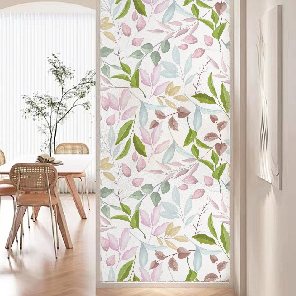 Yiyao BLT5130 새로운 간단한 꽃다발 잎 유리 유리 스티커 거실 유리문과 접착제 정전기 스티커가없는 창문스토어 가기