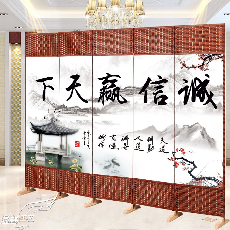 간단한 스크린 파티션 벽 접이식 문 간단한 현대 모바일 거실 침실 작은 아파트 푸시 풀 패브릭 입구스토어 가기