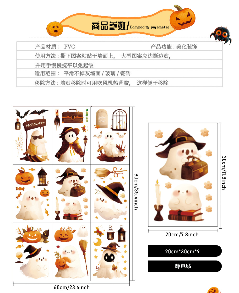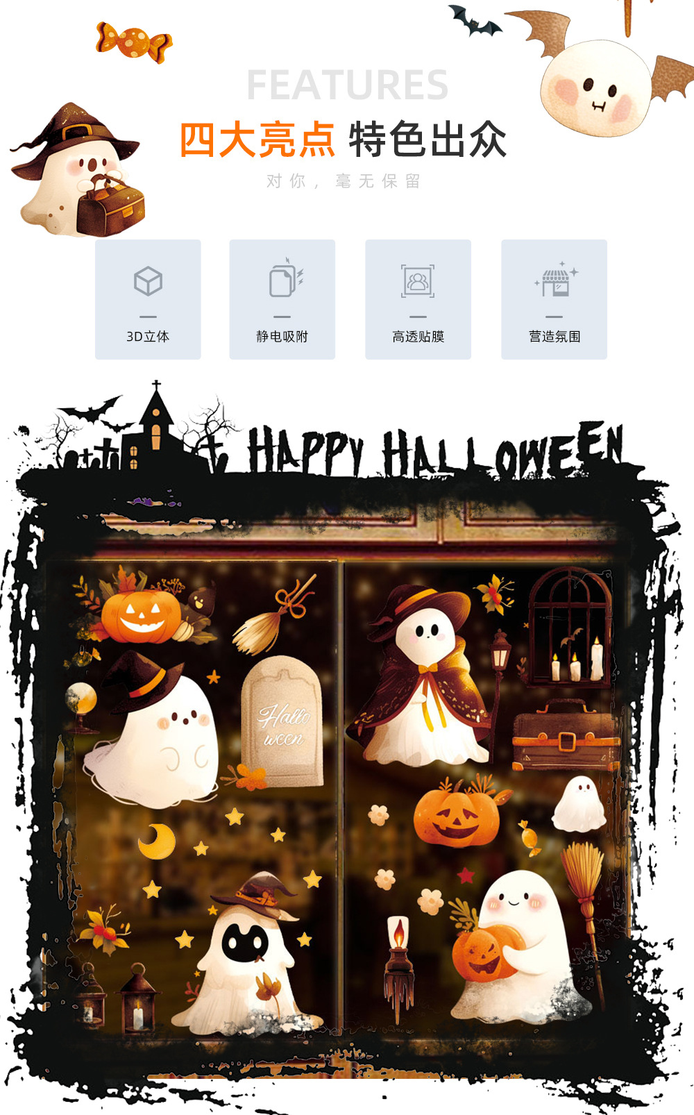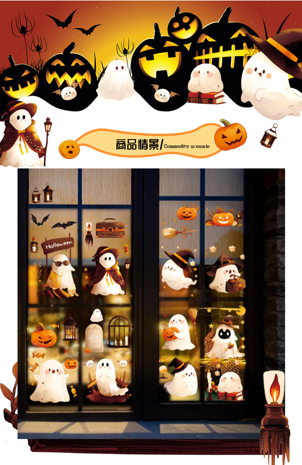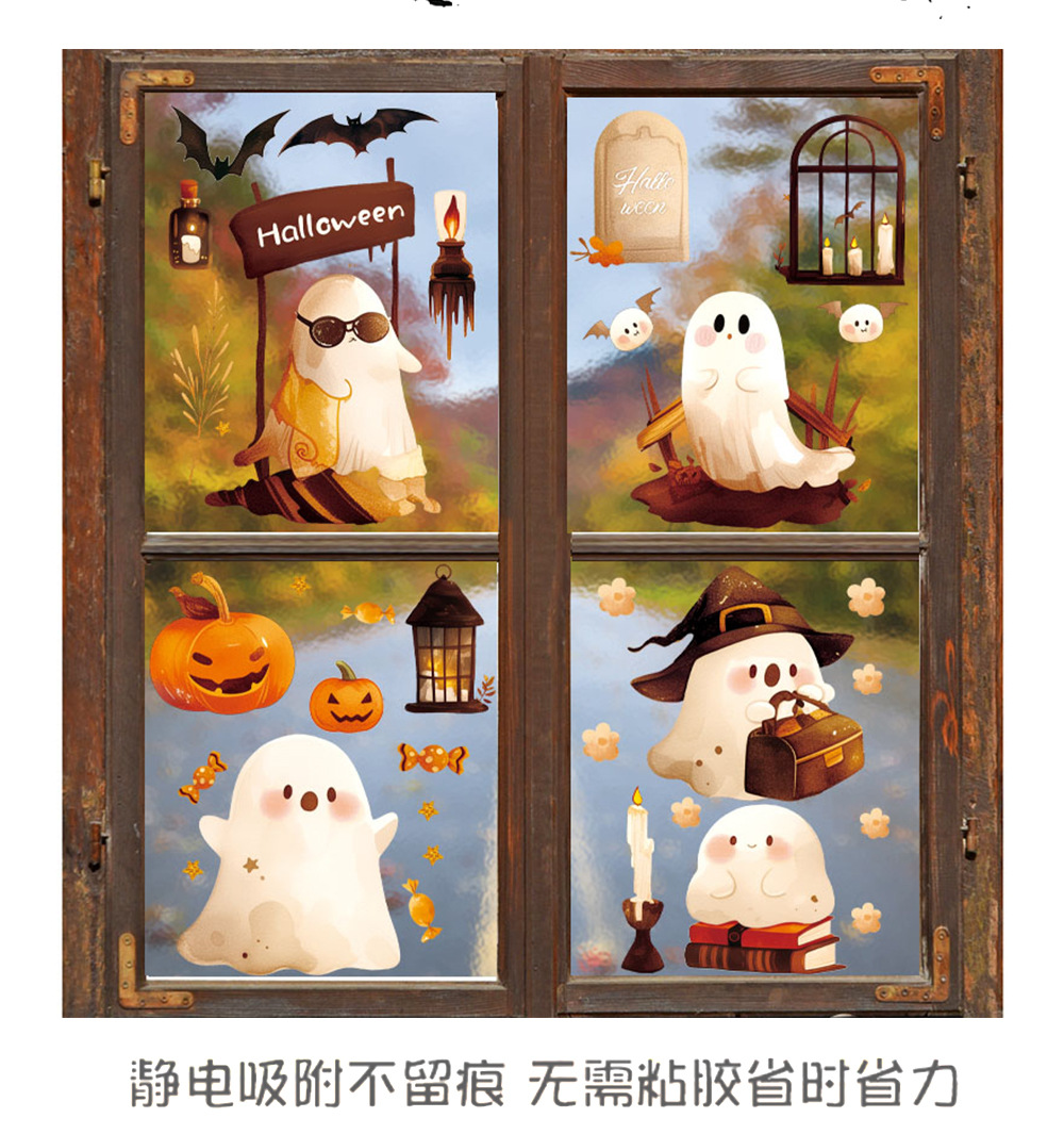 새로운 국경 할로윈 만화 귀여운 장식 ing 스티커 해골 호박 유령 정적 스티커 양면 창 스티커스토어 가기