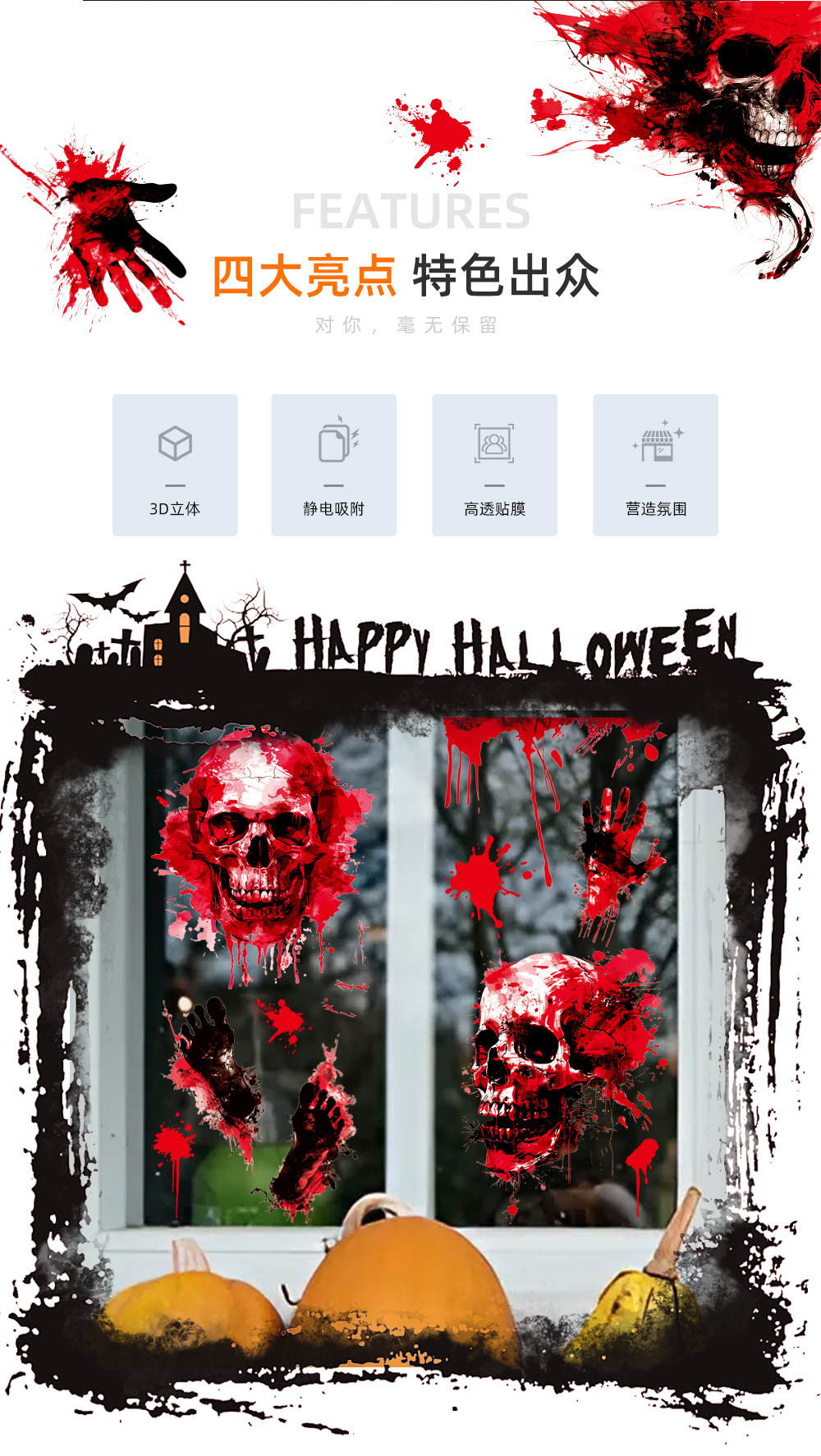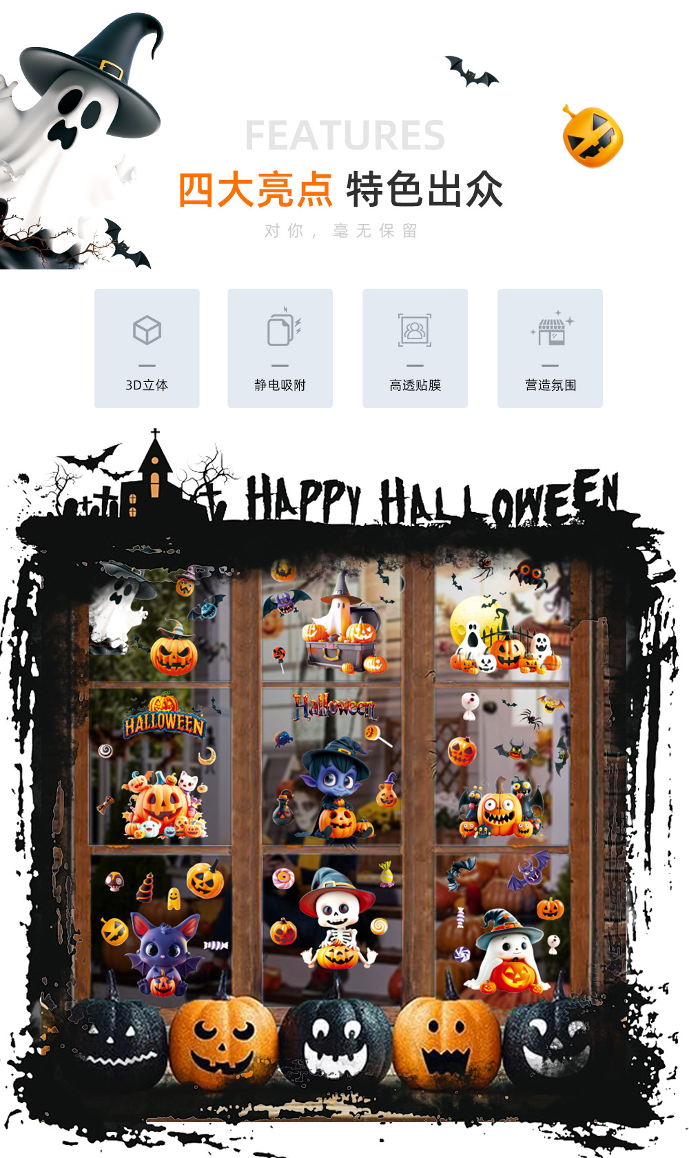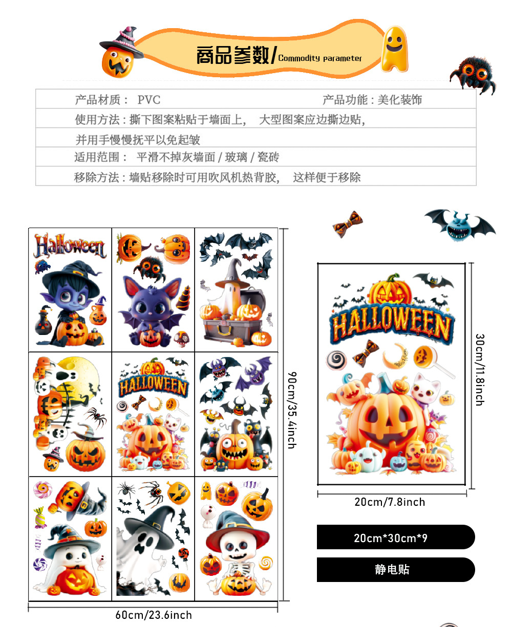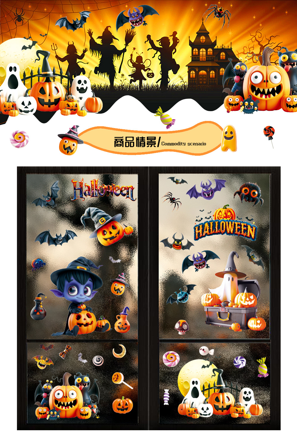 새로운 국경 할로윈 만화 귀여운 장식 ing 스티커 해골 호박 유령 정적 스티커 양면 창 스티커스토어 가기
