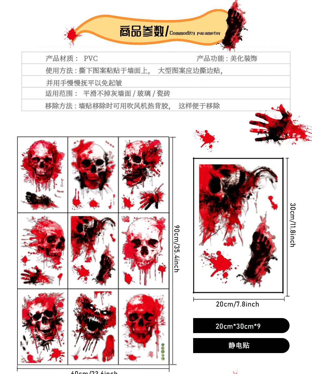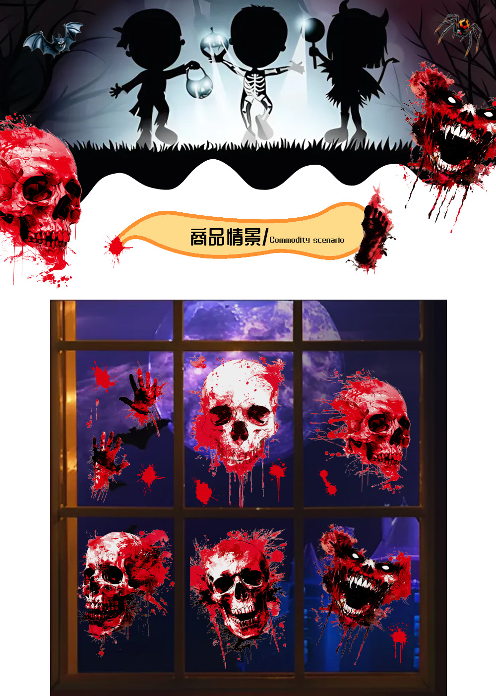 새로운 국경 할로윈 만화 귀여운 장식 ing 스티커 해골 호박 유령 정적 스티커 양면 창 스티커