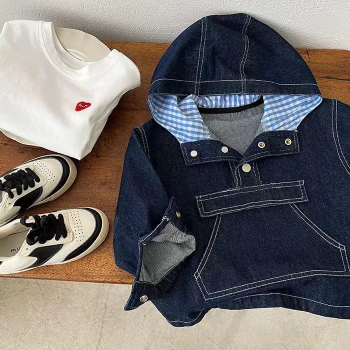 어린이 부드러운 청바지 소년 봄과 가을 풀오버 어린이 포켓 재킷 밝은 라인 아기의 후드 자켓 여성 서양식스토어 가기