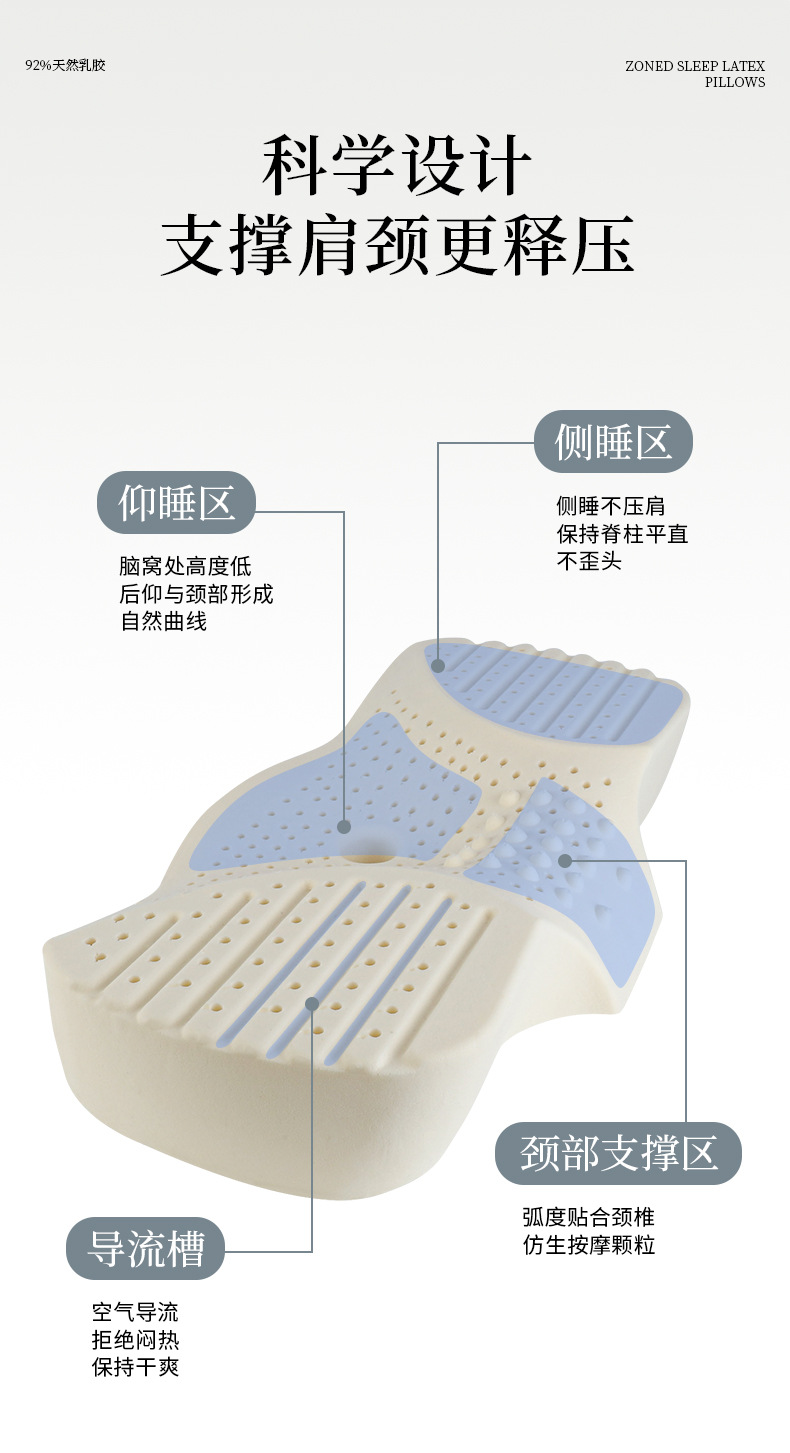 천연 경추 베개 라텍스 베개 가정용 목 보호 베개 수면 보조 목 베개 제조업체 도매 고무 측면 수면용스토어 가기