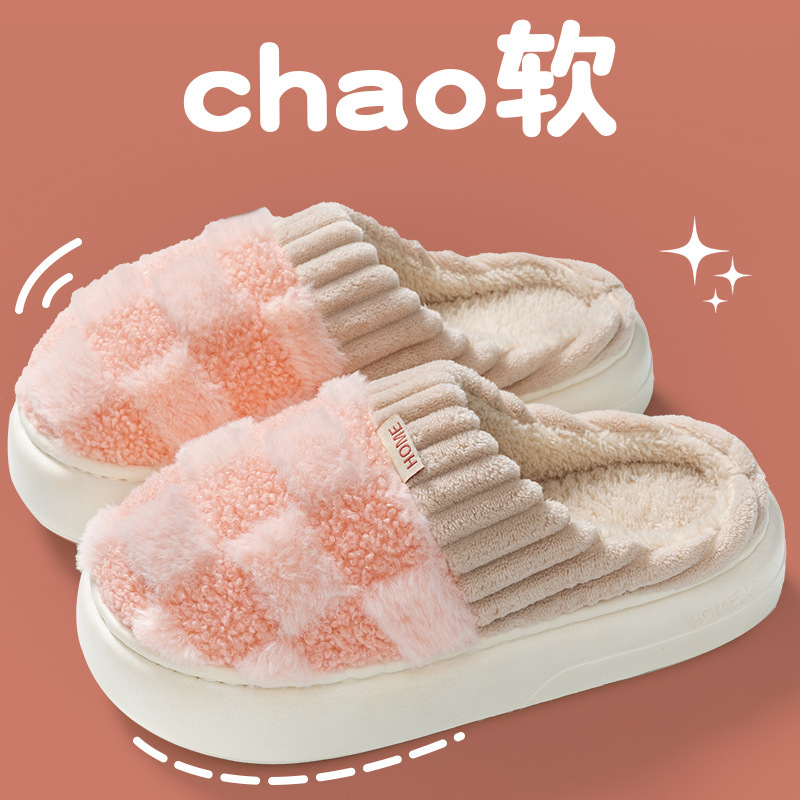 커플의 똥 느낌 면 슬리퍼 여성의 가을 겨울 야외 홈 따뜻한 기모 두꺼운 마오 마오 신발 문 신발 남성스토어 가기