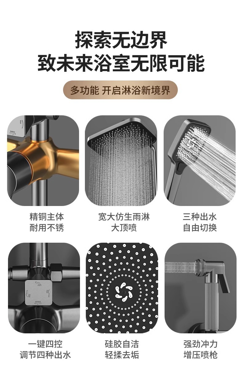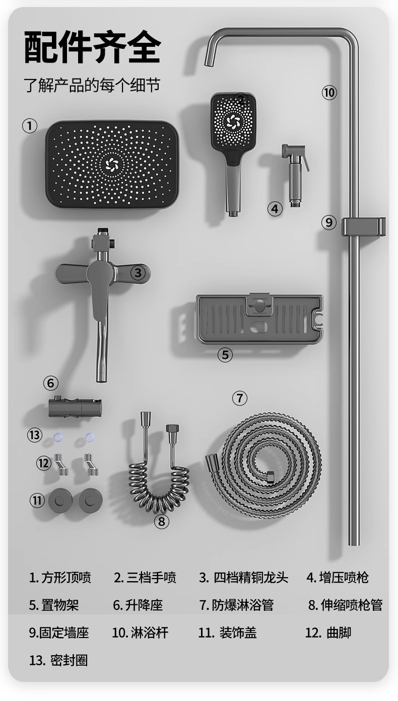 샤워 샤워 세트 가정용 욕실 가압 총 회색 구리 욕실 화장실 욕조 샤워 헤드스토어 가기