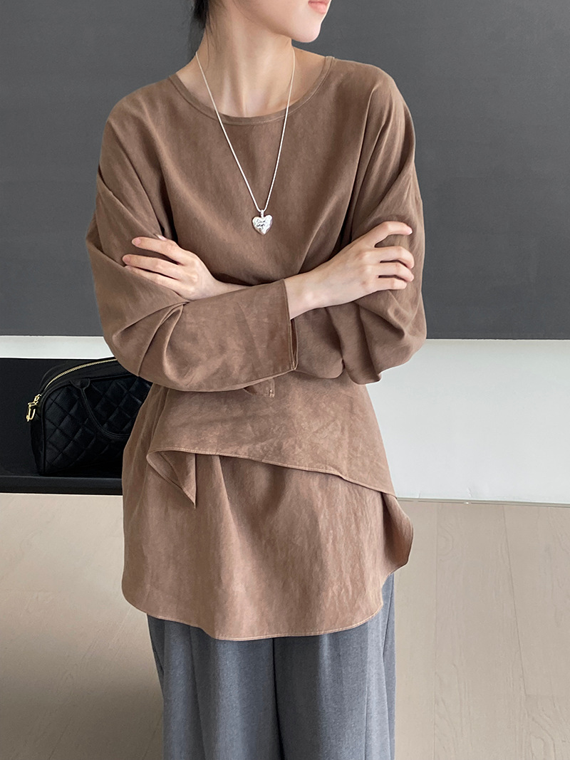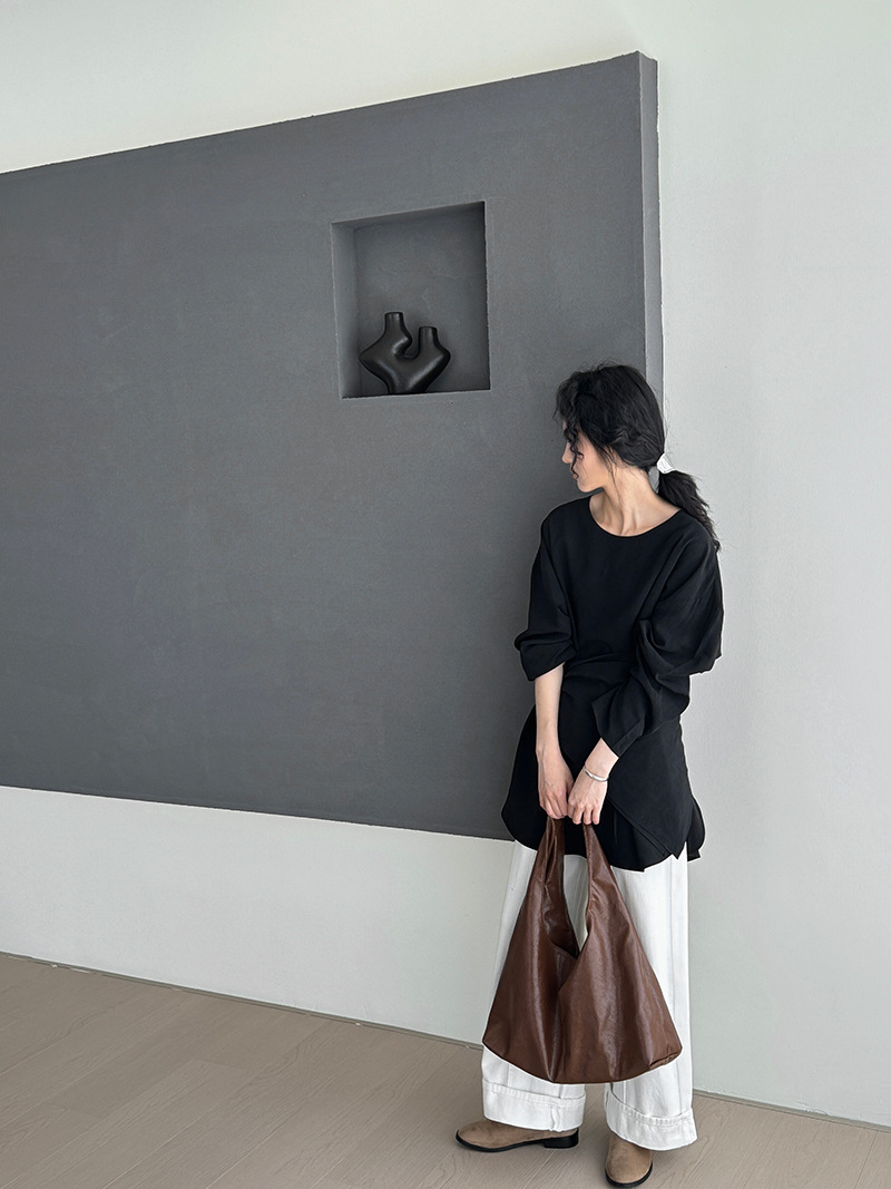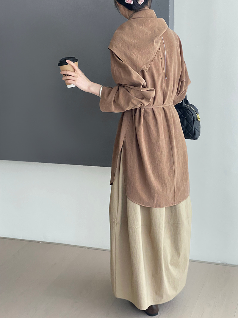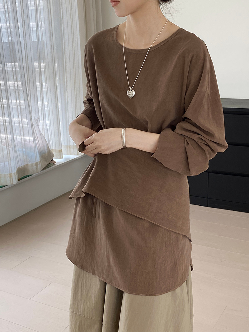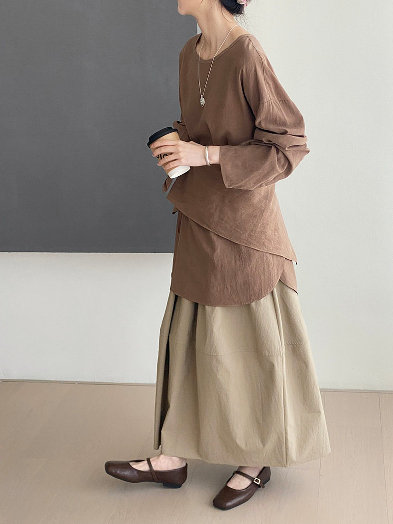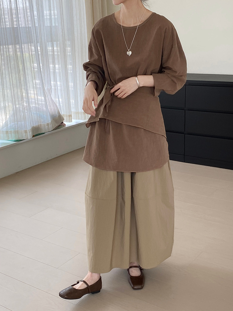 【특가 상품, 반품/교환 불가】나모 라운드넥 루즈핏 셔츠, 허리끈 셔츠, 동일 색상 스카프 포함 2133