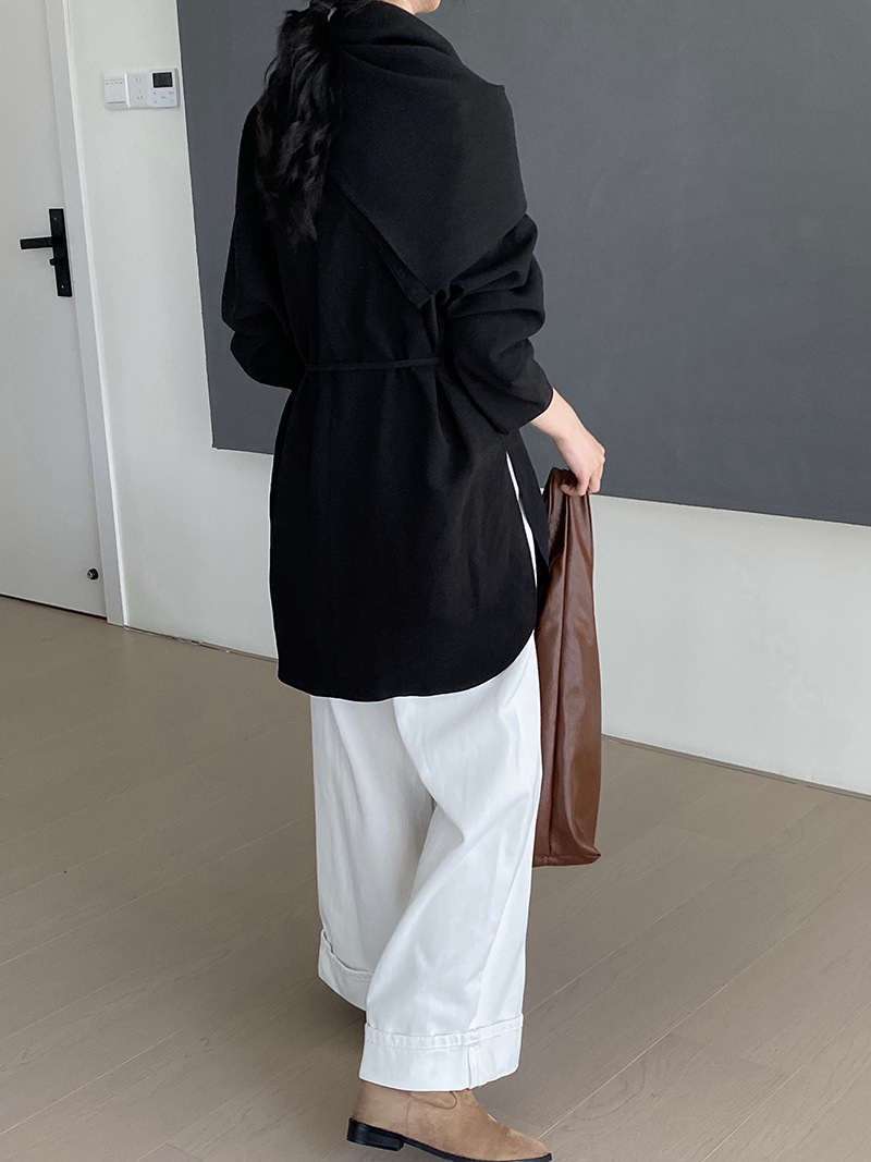 【특가 상품, 반품/교환 불가】나모 라운드넥 루즈핏 셔츠, 허리끈 셔츠, 동일 색상 스카프 포함 2133스토어 가기