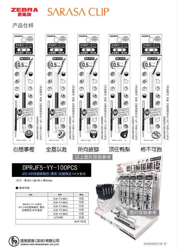 일본 얼룩말 얼룩말 JF-0.5 제한된 리필 jj15 중립 리필 프레스 블랙 교체 코어를 지원해야합니다스토어 가기