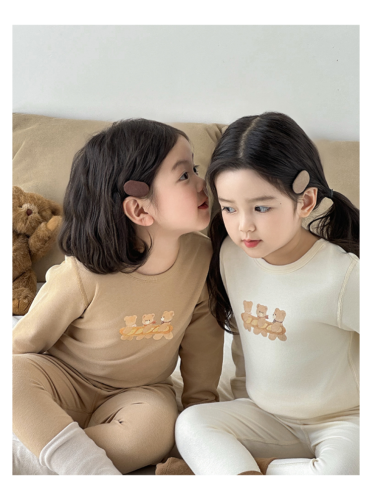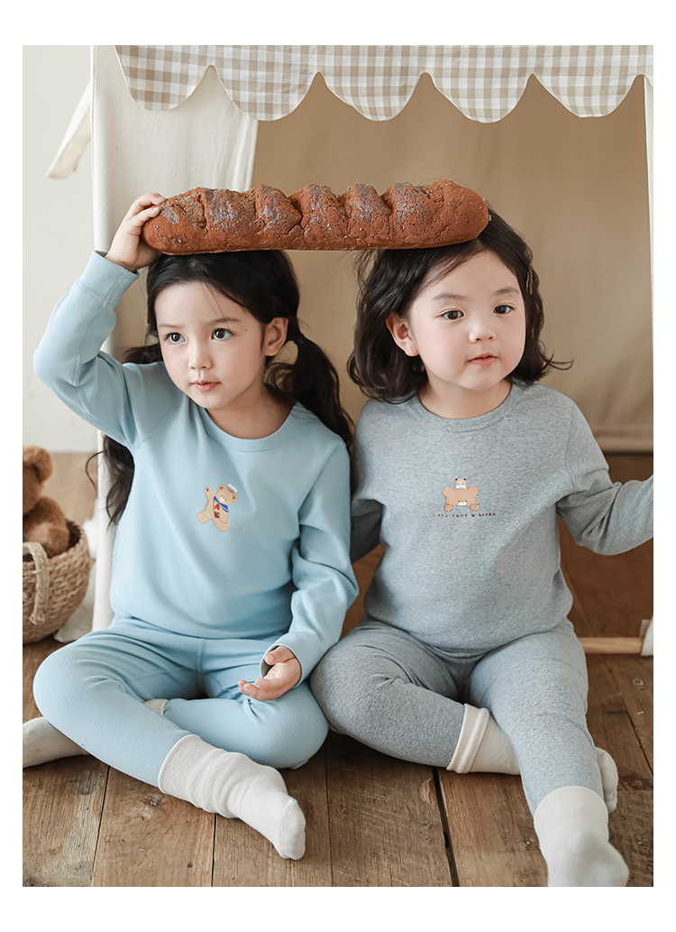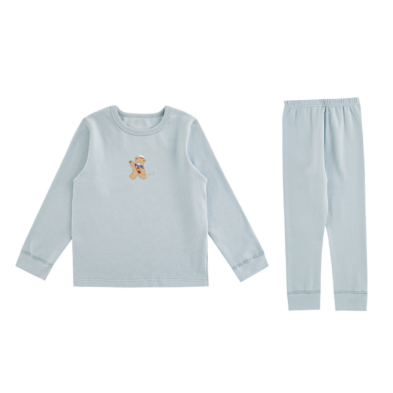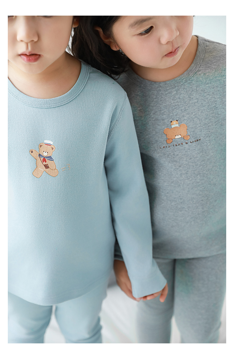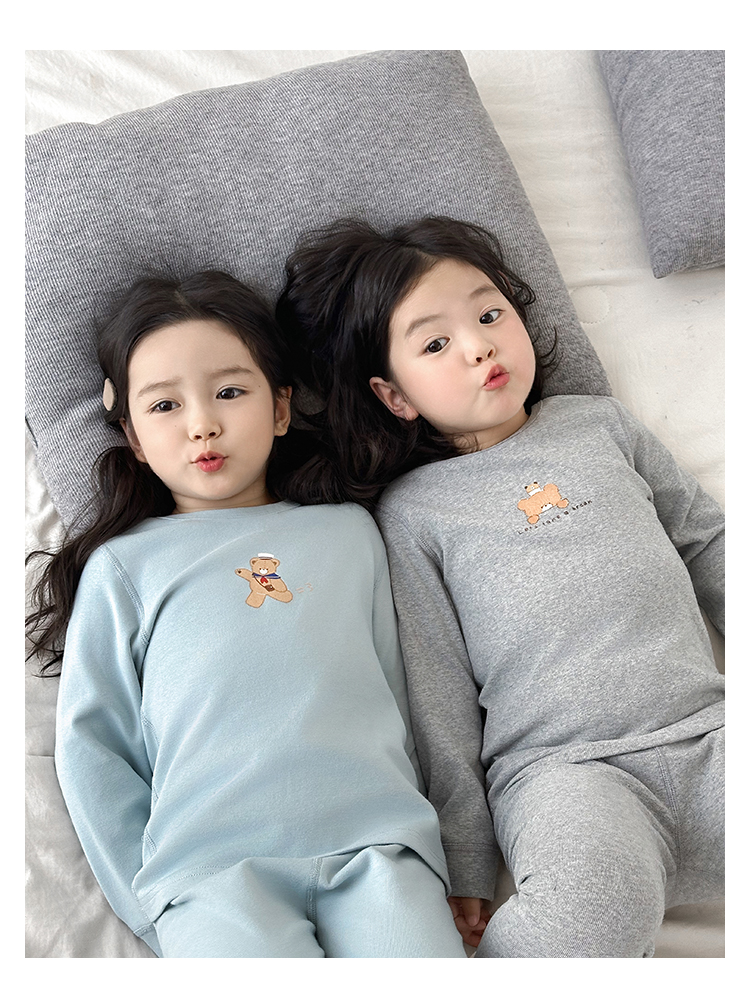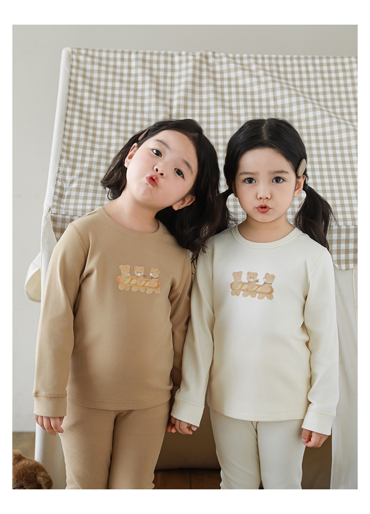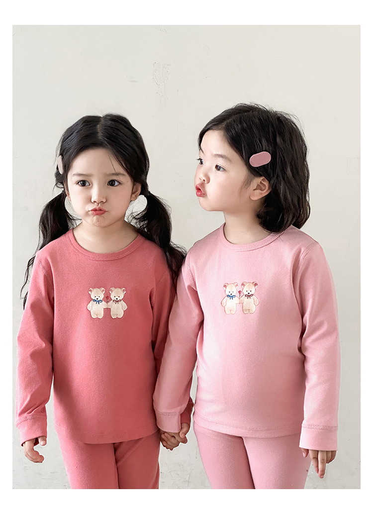 Wurib Girl's Happy Bear Cub 인쇄 홈 의류 세트 가을 귀엽고 깔끔한 라운드 넥 파자마 2 피스 세트