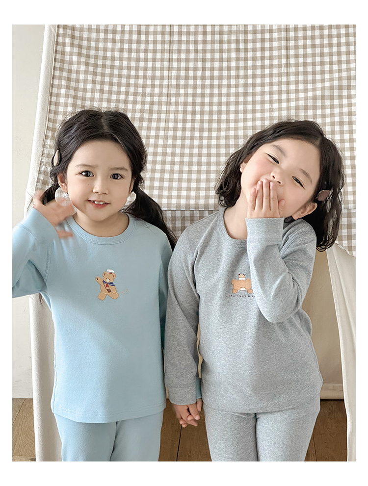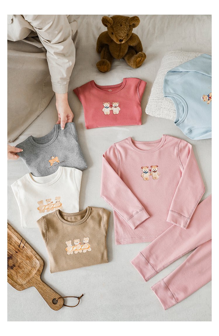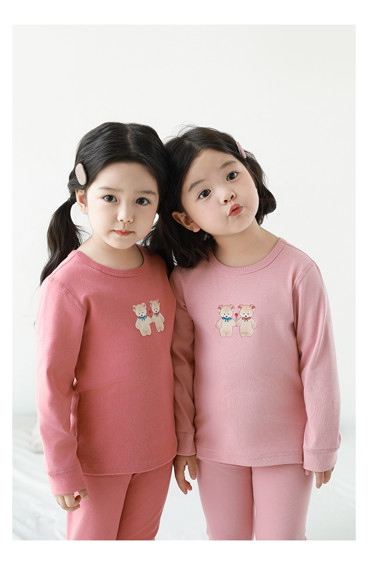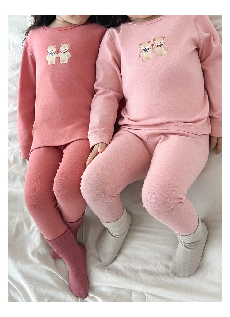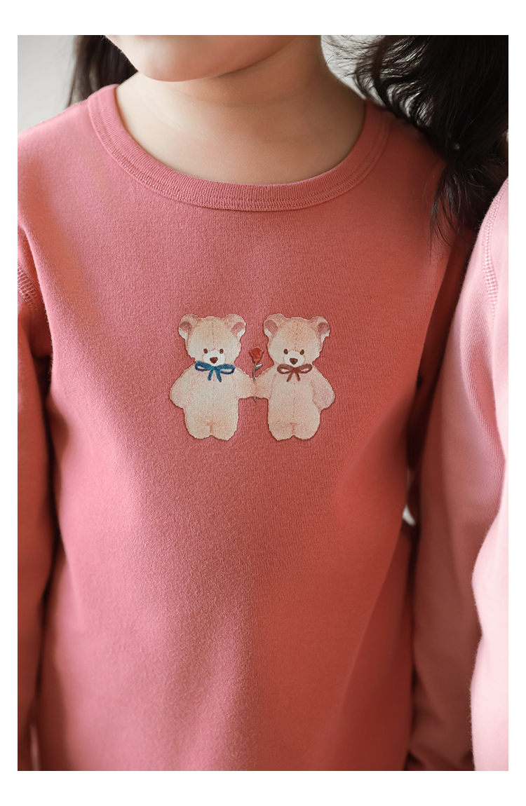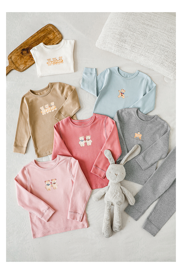 Wurib Girl's Happy Bear Cub 인쇄 홈 의류 세트 가을 귀엽고 깔끔한 라운드 넥 파자마 2 피스 세트