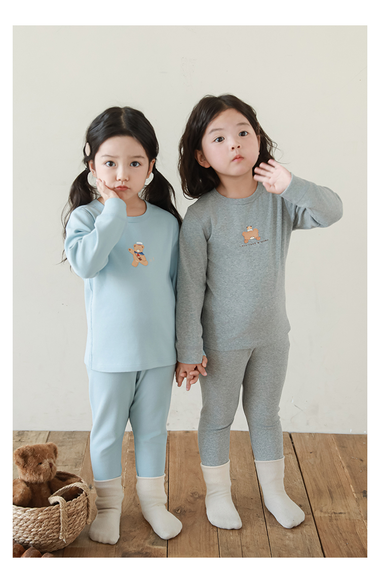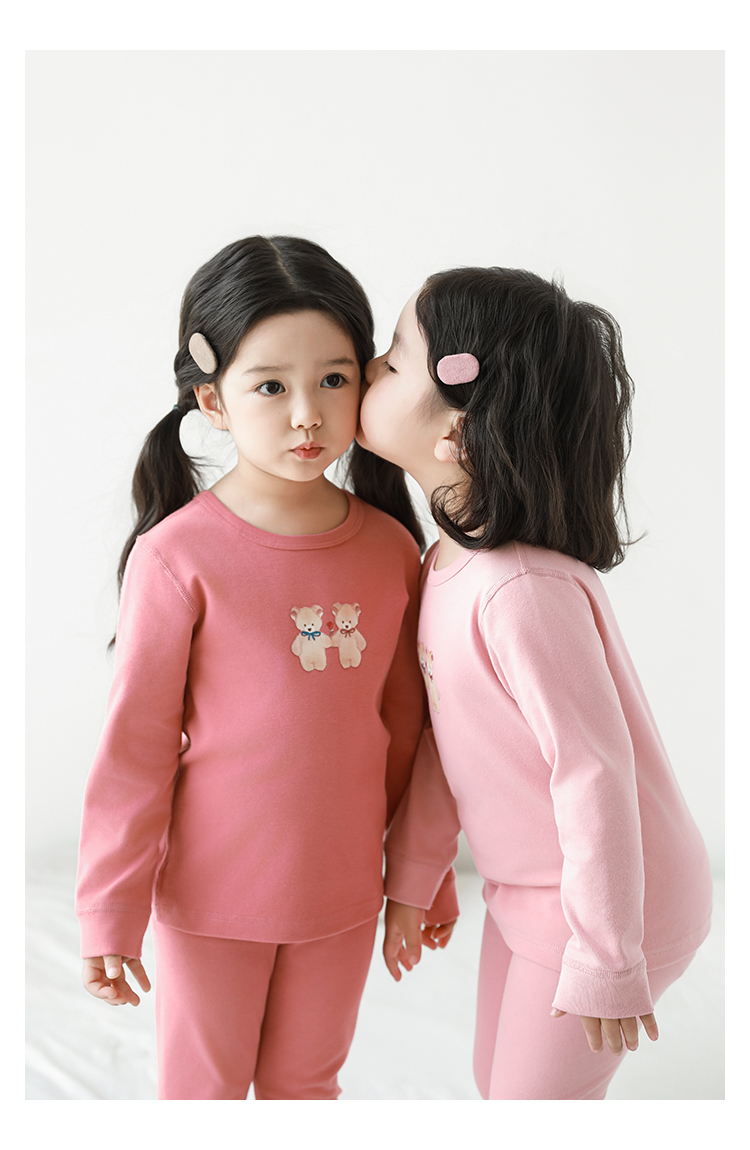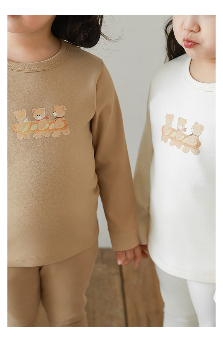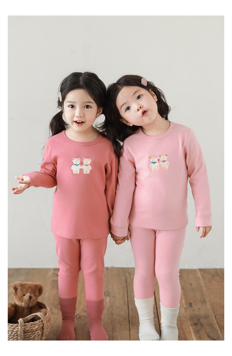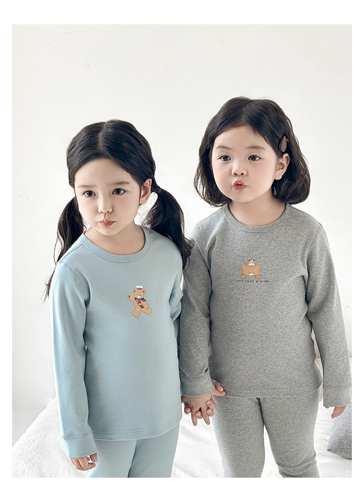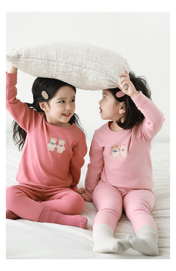 Wurib Girl's Happy Bear Cub 인쇄 홈 의류 세트 가을 귀엽고 깔끔한 라운드 넥 파자마 2 피스 세트