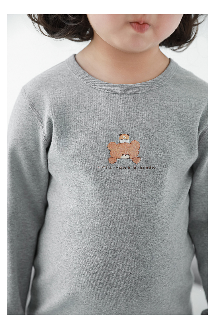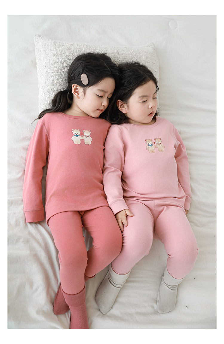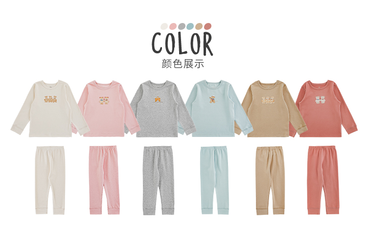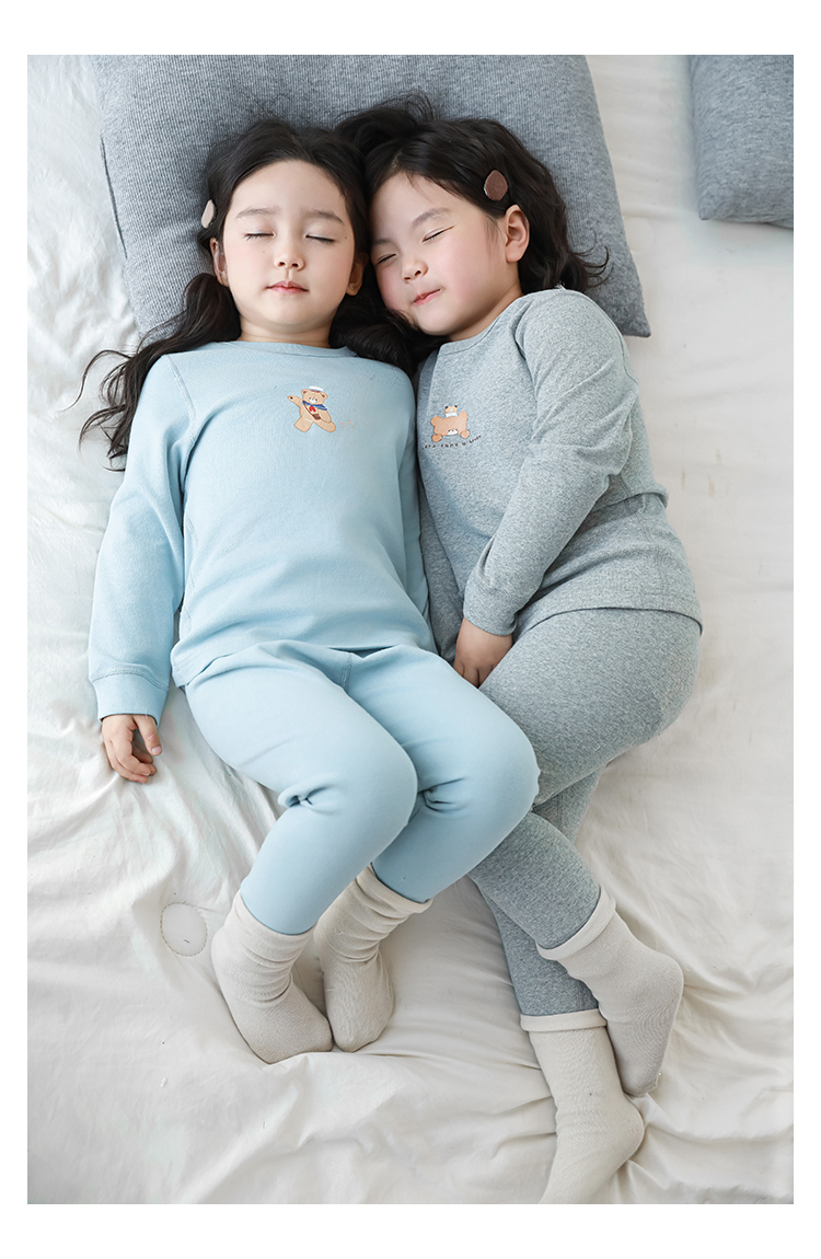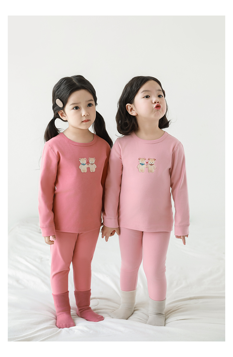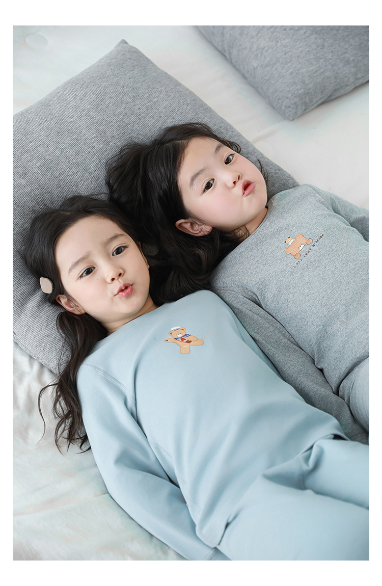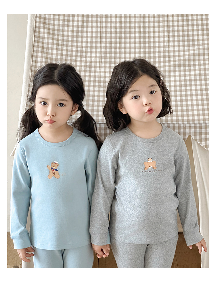 Wurib Girl's Happy Bear Cub 인쇄 홈 의류 세트 가을 귀엽고 깔끔한 라운드 넥 파자마 2 피스 세트
