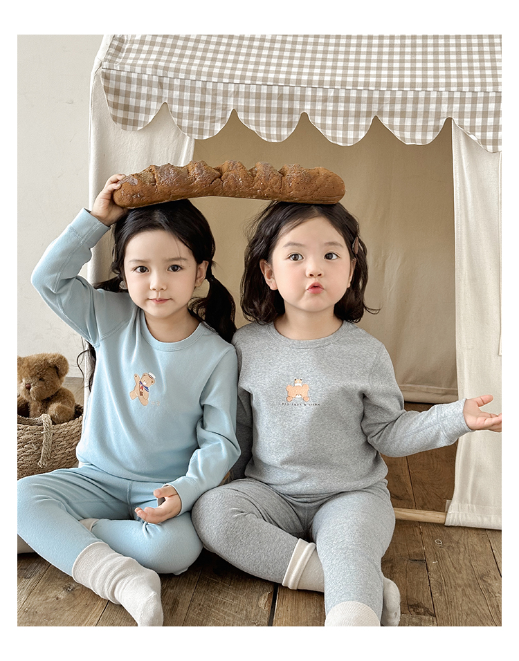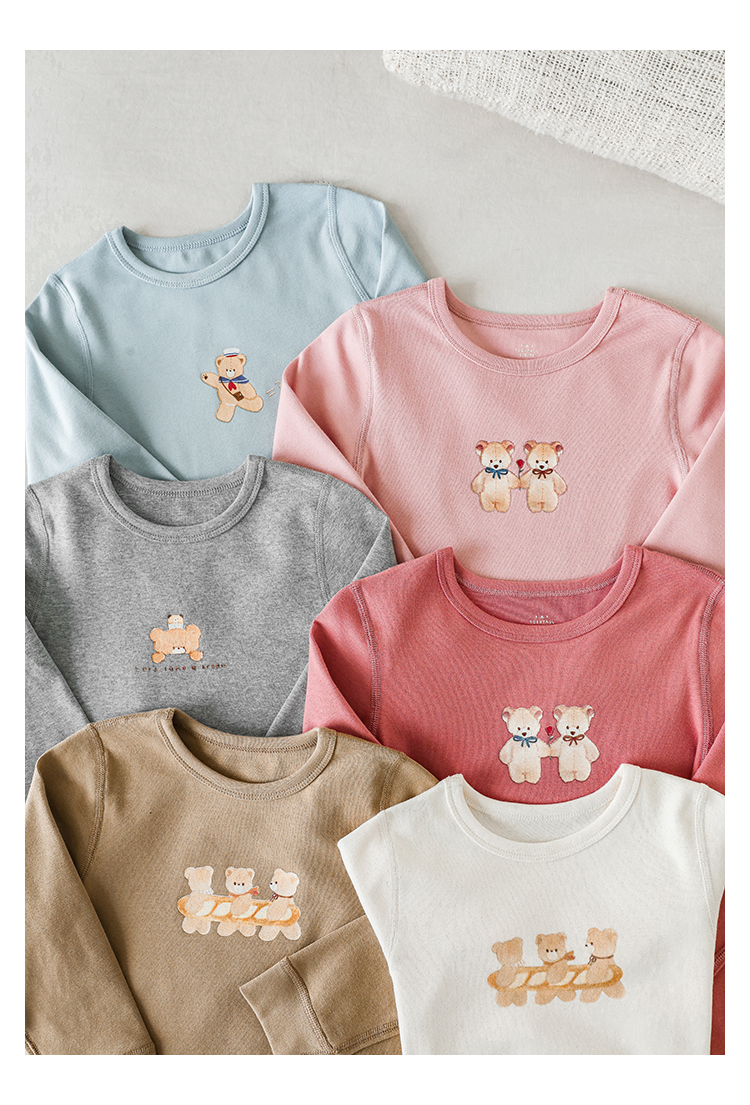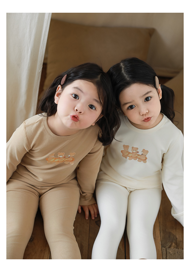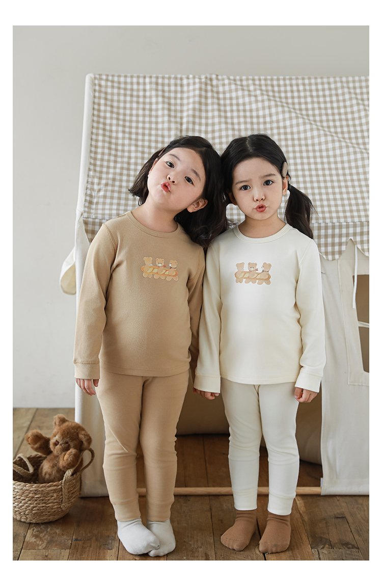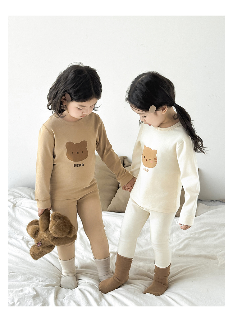 Wurib Girl's Happy Bear Cub 인쇄 홈 의류 세트 가을 귀엽고 깔끔한 라운드 넥 파자마 2 피스 세트스토어 가기