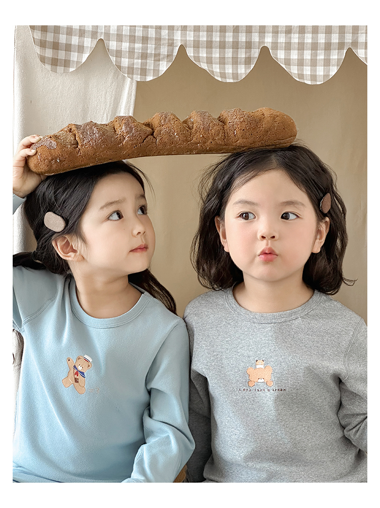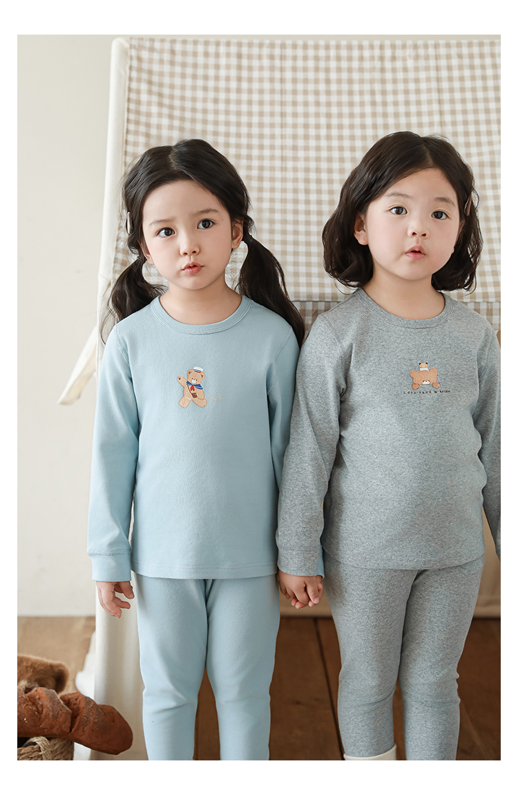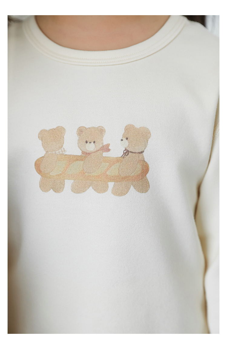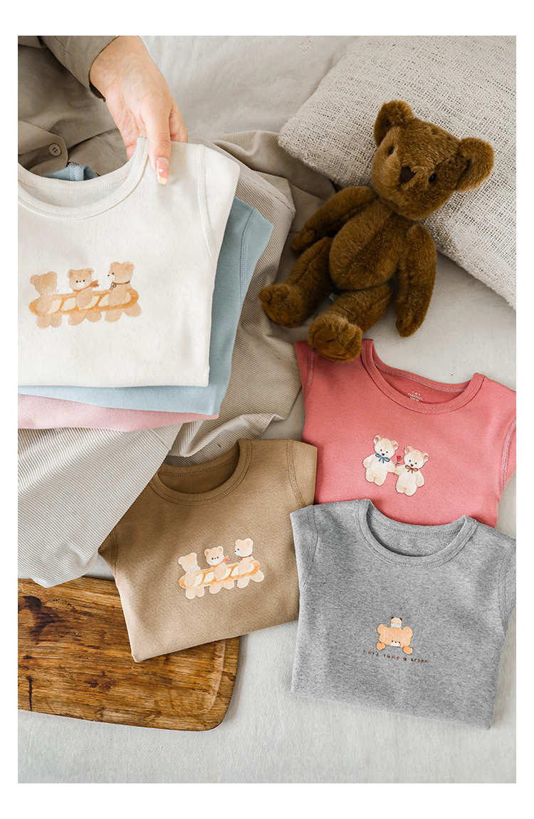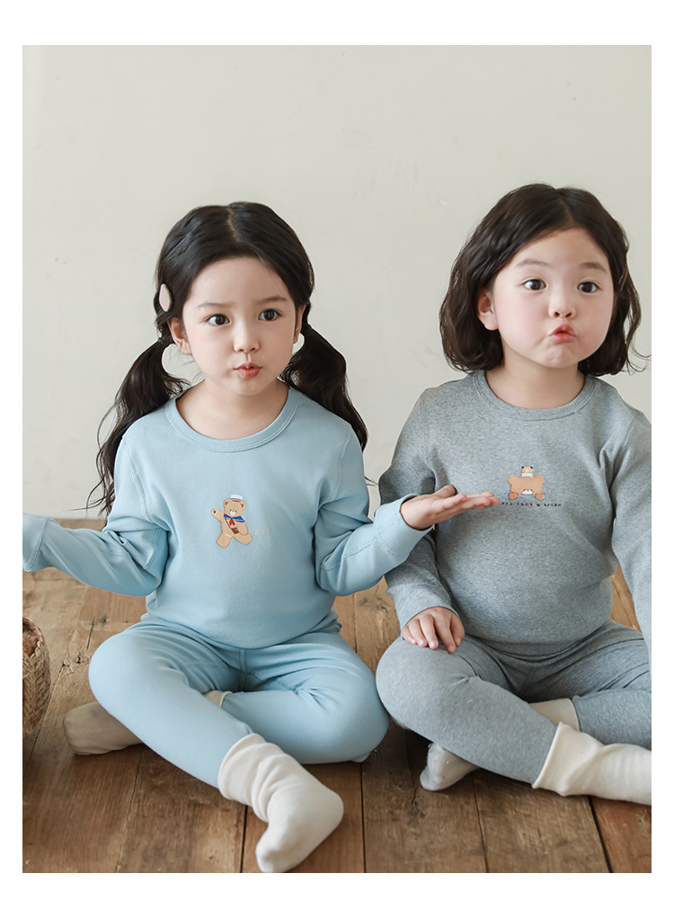 Wurib Girl's Happy Bear Cub 인쇄 홈 의류 세트 가을 귀엽고 깔끔한 라운드 넥 파자마 2 피스 세트스토어 가기