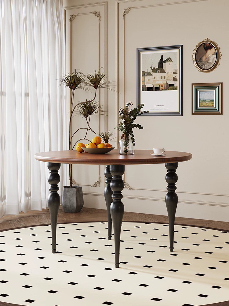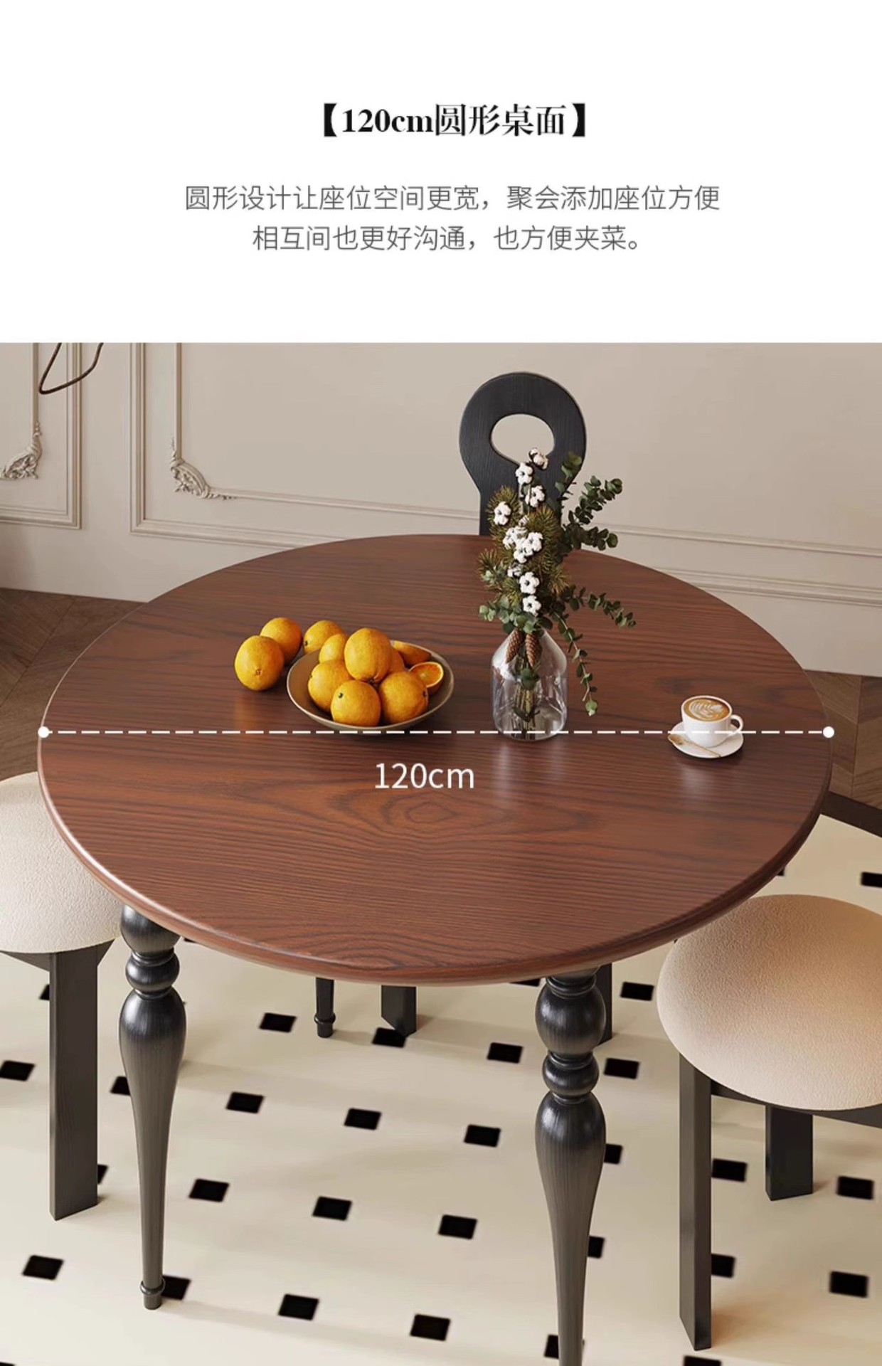 빈티지 라운드 솔리드 우드 다이닝 테이블 골동품 가정용 레스토랑 라운드 테이블 프랑스 스타일 간단한 다이닝 테이블 창조적 인 로그 커피 테이블