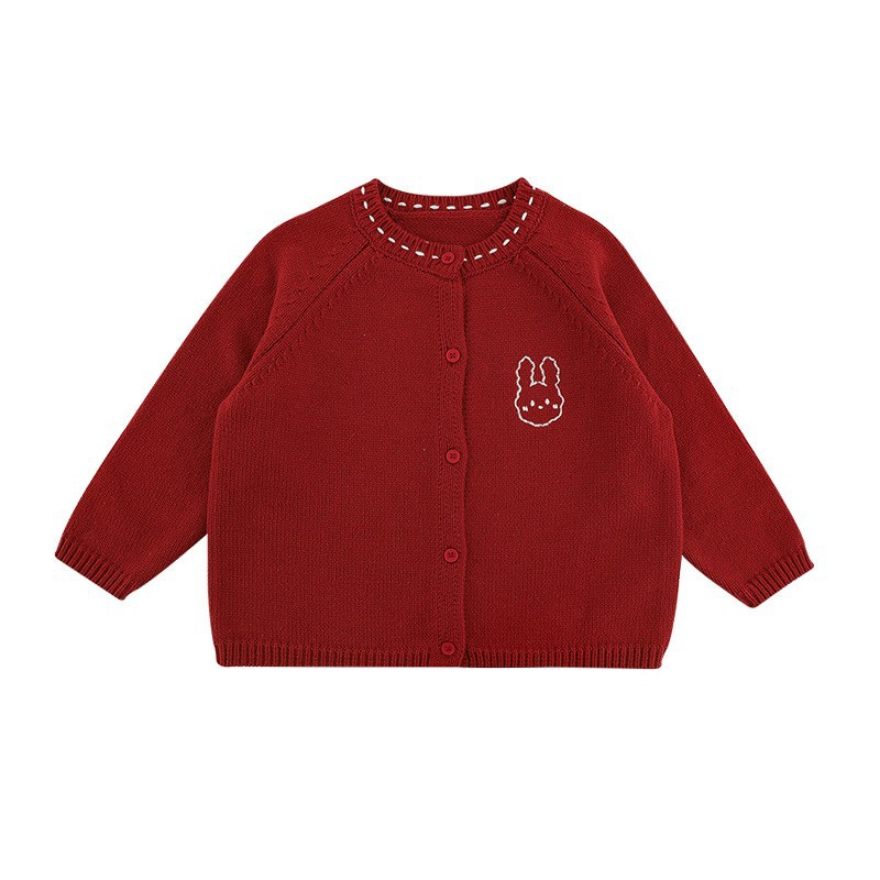 Wulibuyi 소녀 토끼 자수 카디건 재킷 2025 가을 어린이 라글란 슬리브 느슨한 니트 스웨터 유행스토어 가기