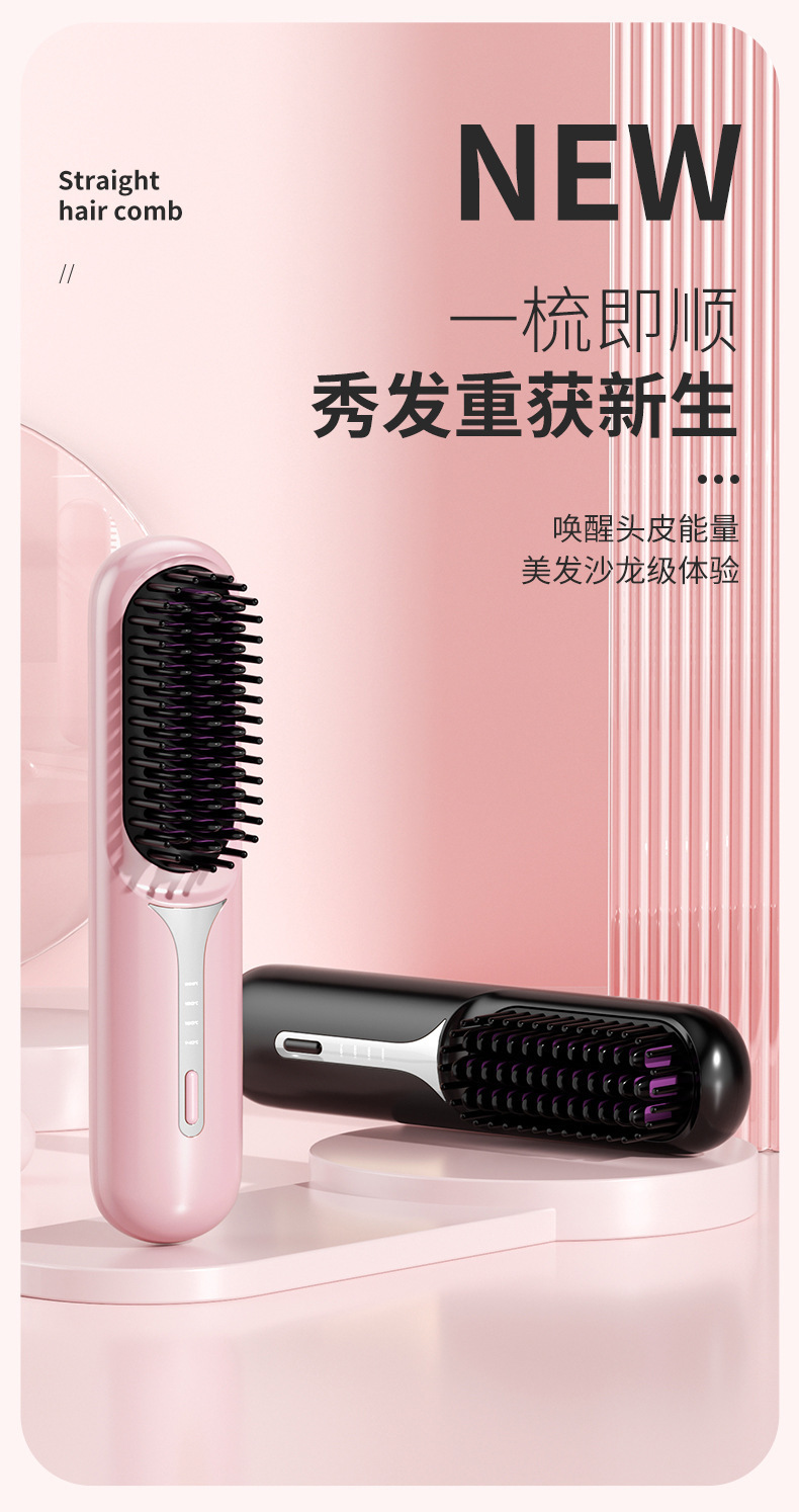 便携式无线直发梳无线直发梳负离子便携直卷两用卷发棒直发卷发两用夹板电卷发梳子