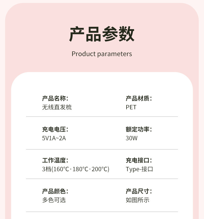 无线直发梳负离子便携直卷两用卷发棒直发卷发两用夹板电卷发梳子