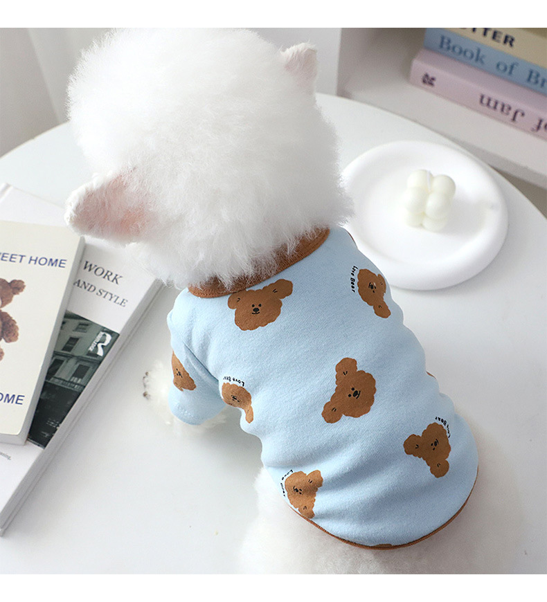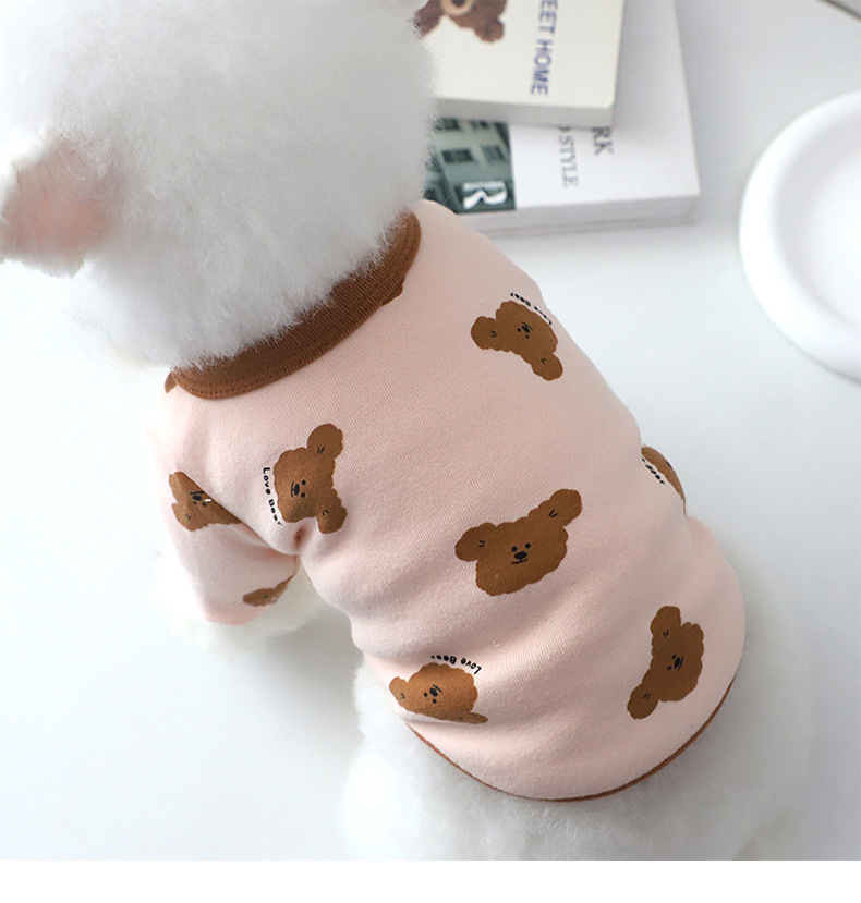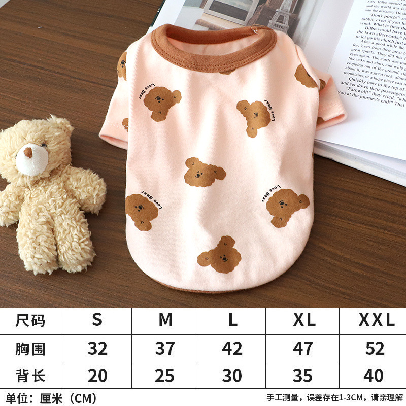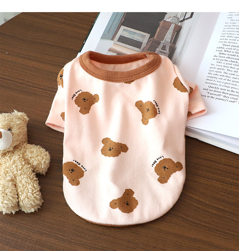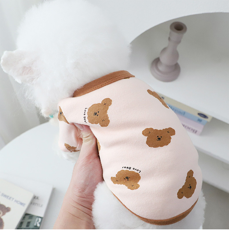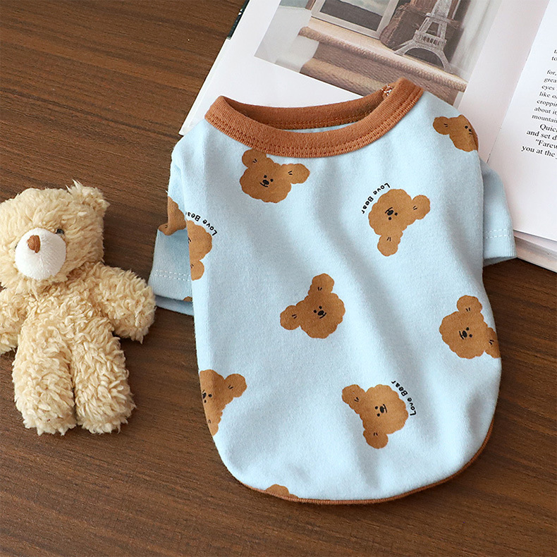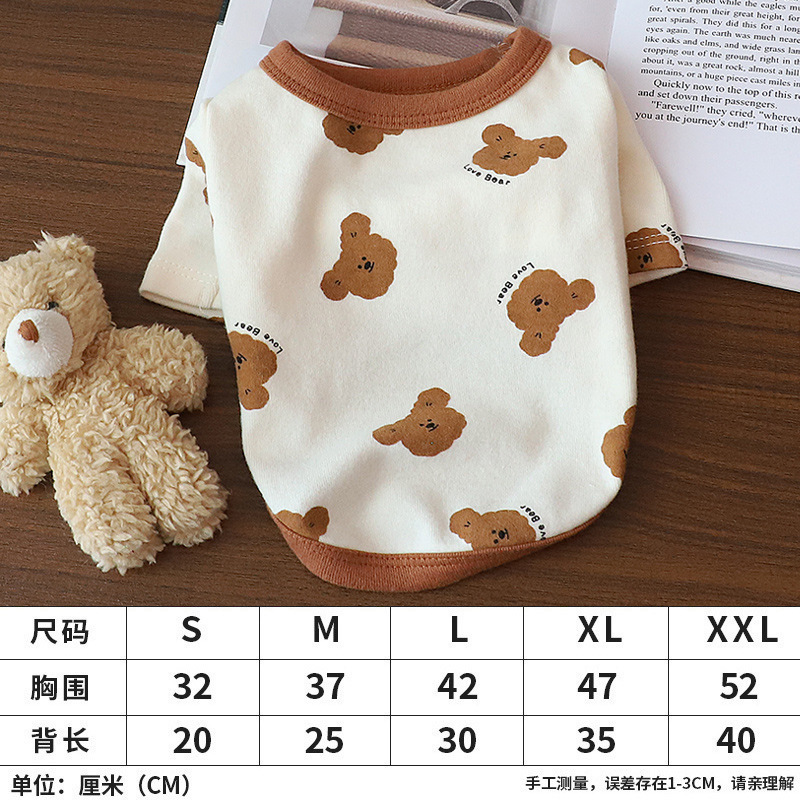 개 옷 곰 캐주얼 반팔 테디 귀여운 인쇄 곰 간단한 풀오버 터틀넥 셔츠 봄과 가을 작은 개스토어 가기