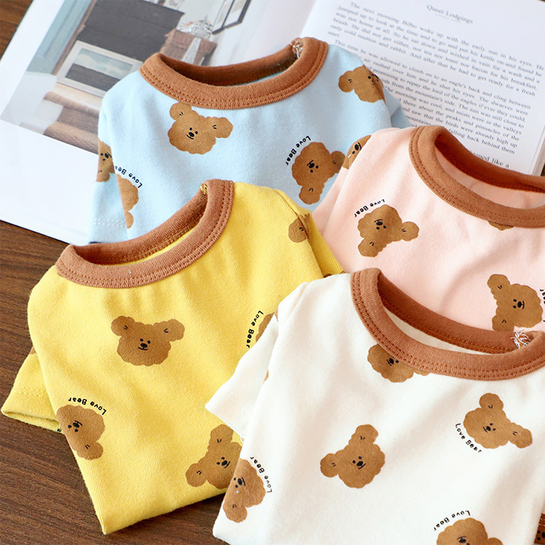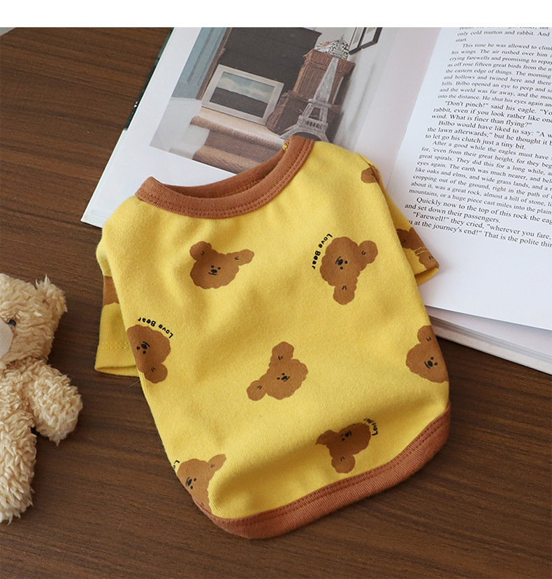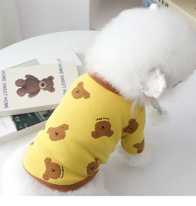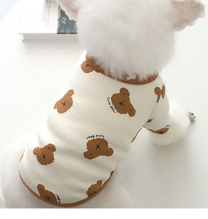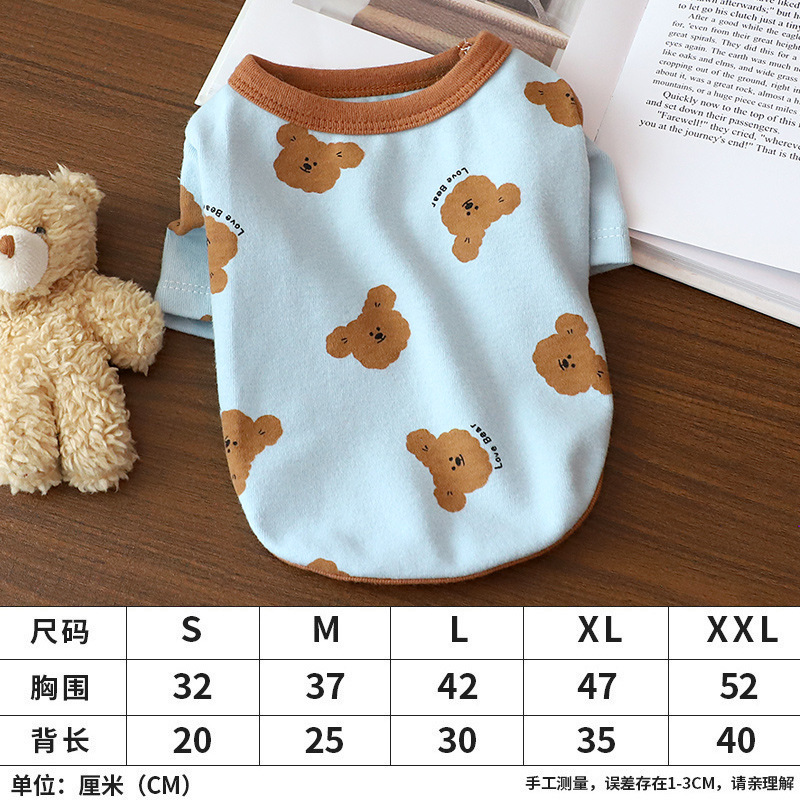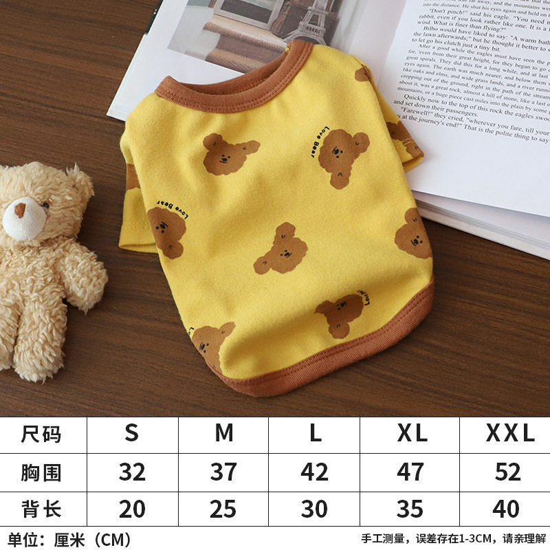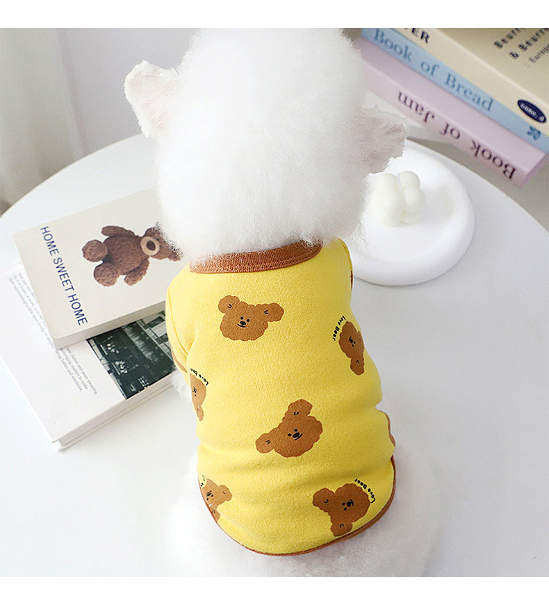 개 옷 곰 캐주얼 반팔 테디 귀여운 인쇄 곰 간단한 풀오버 터틀넥 셔츠 봄과 가을 작은 개스토어 가기