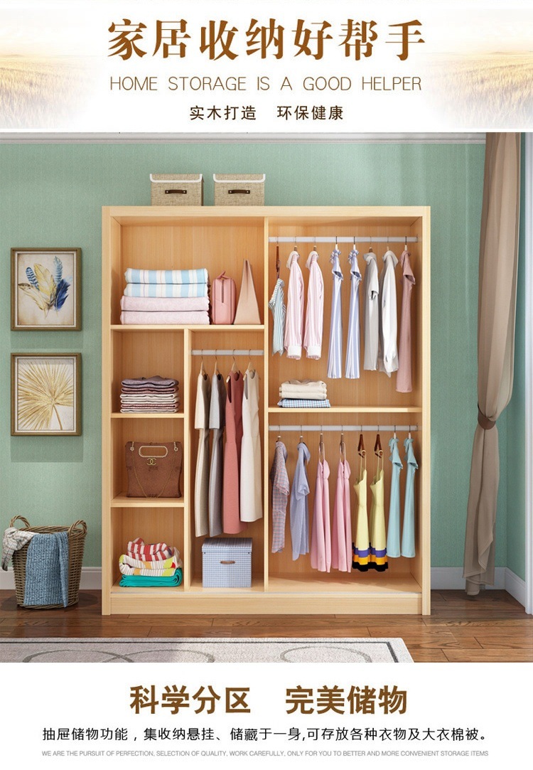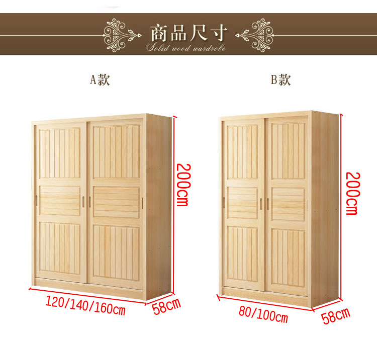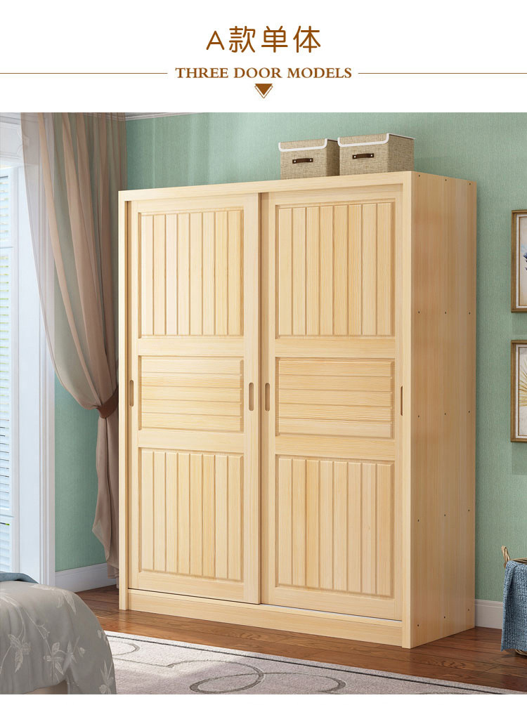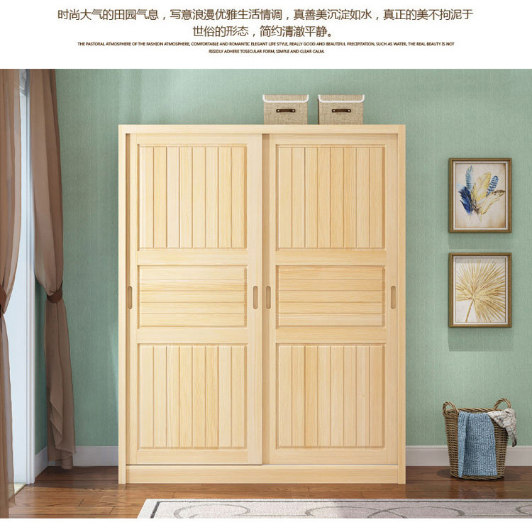 모든 솔리드 우드 소나무 슬라이딩 도어 옷장 간단한 로그 성인 침실 2 도어 어린이 보관 옷장 어셈블리