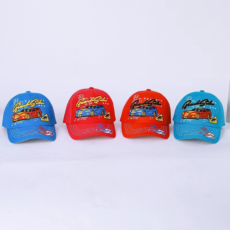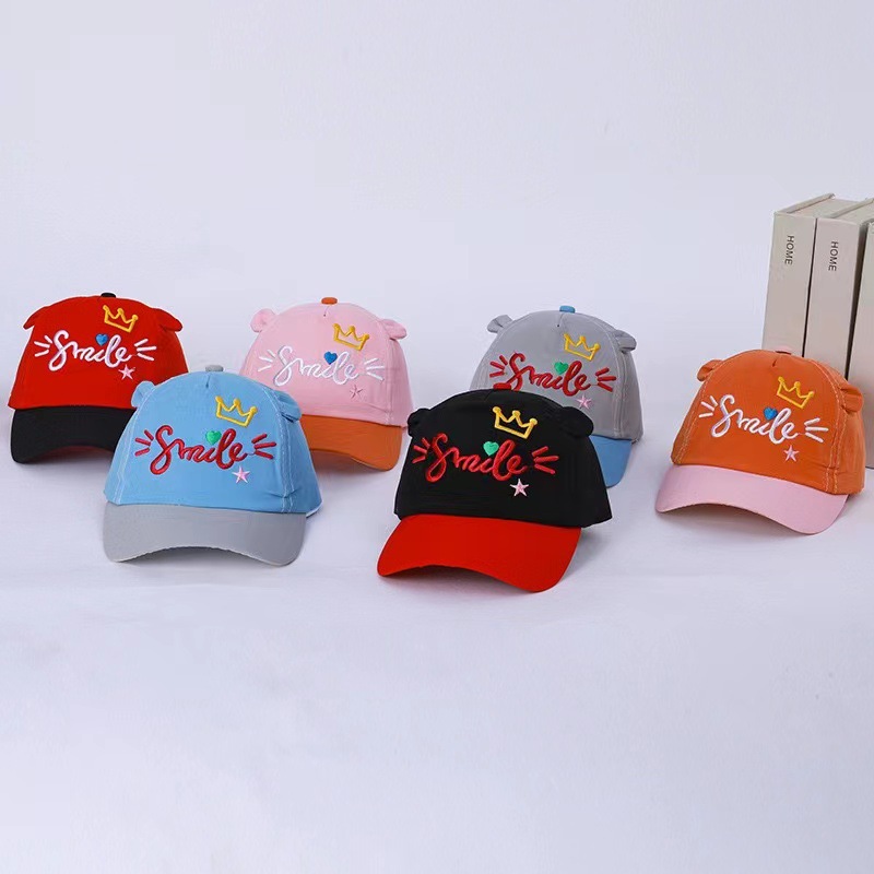 봄과 가을 얇은 새 모자 편지 자수 라벨 피크 캡 야구 격자 무늬 만화 태양 보호 어린이 모자